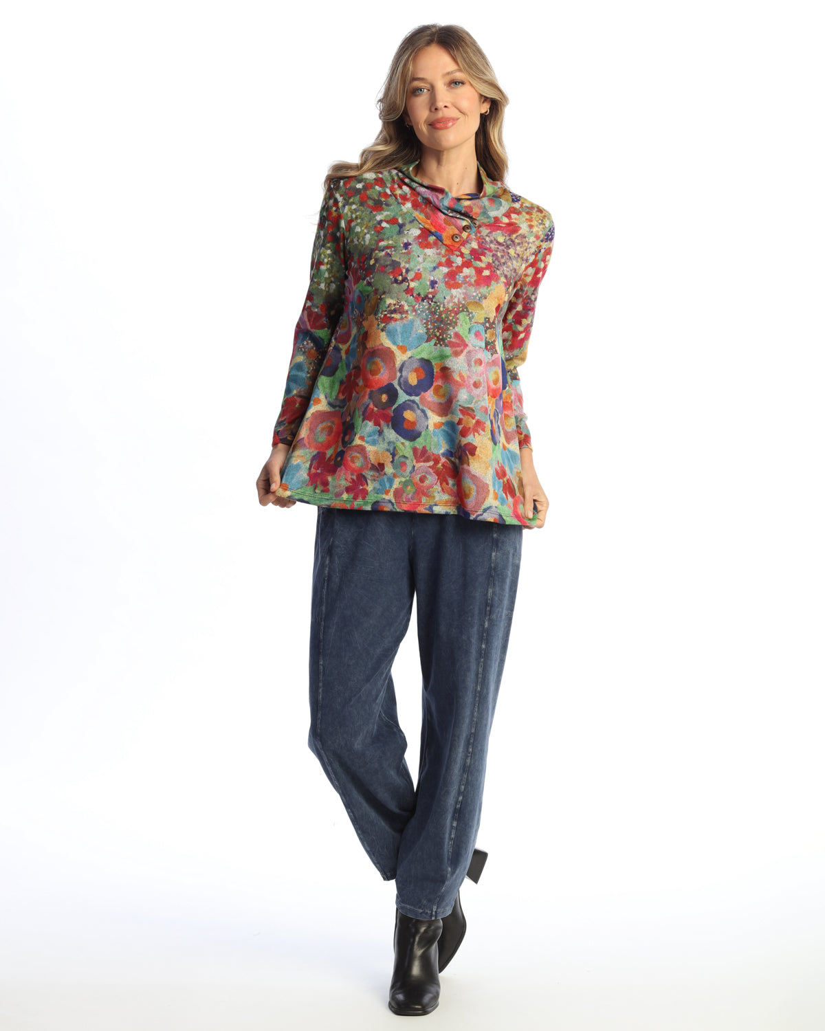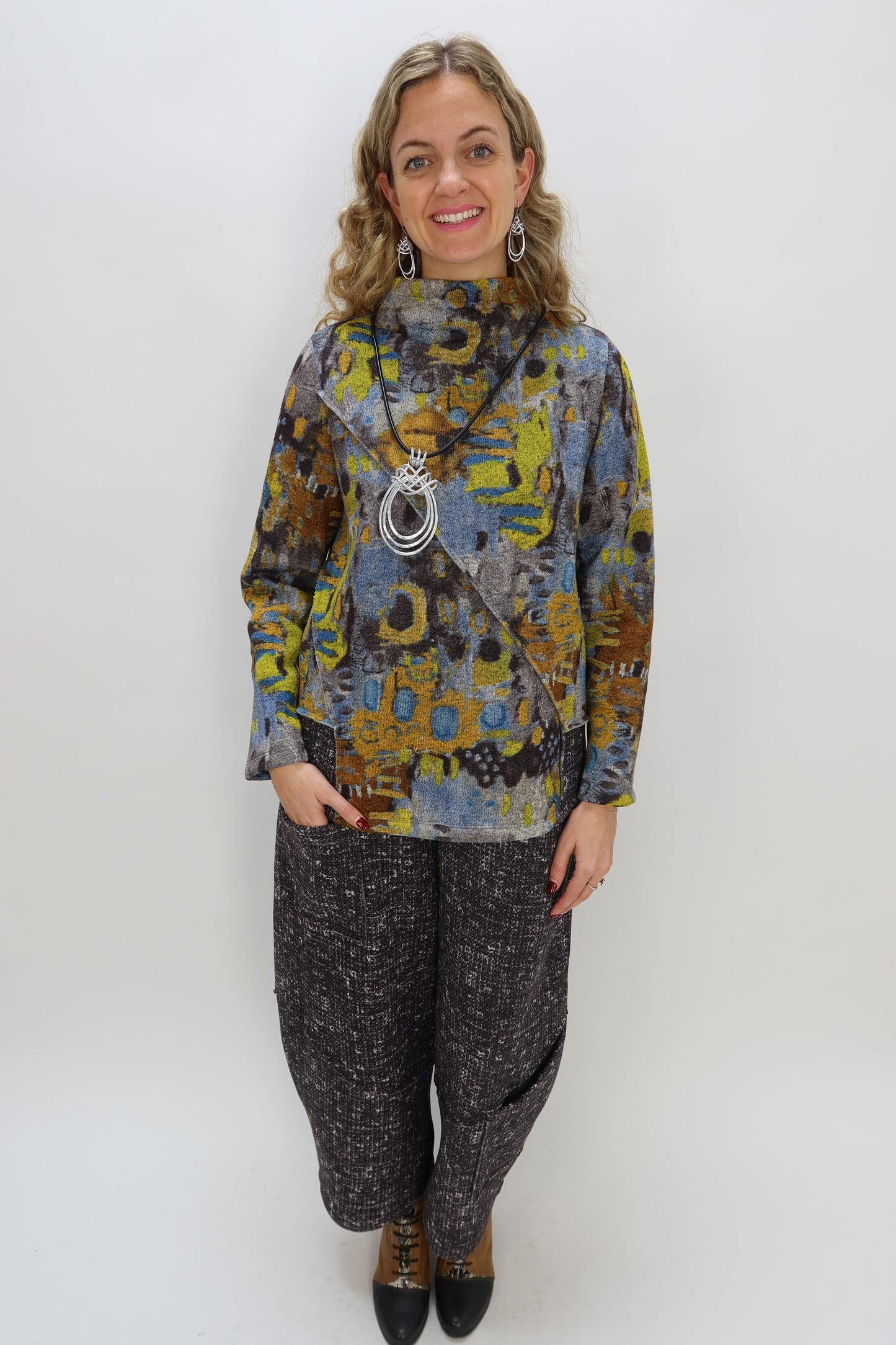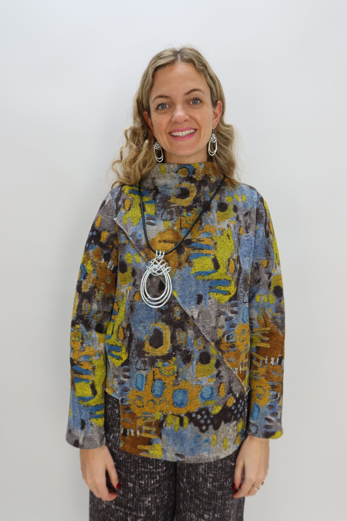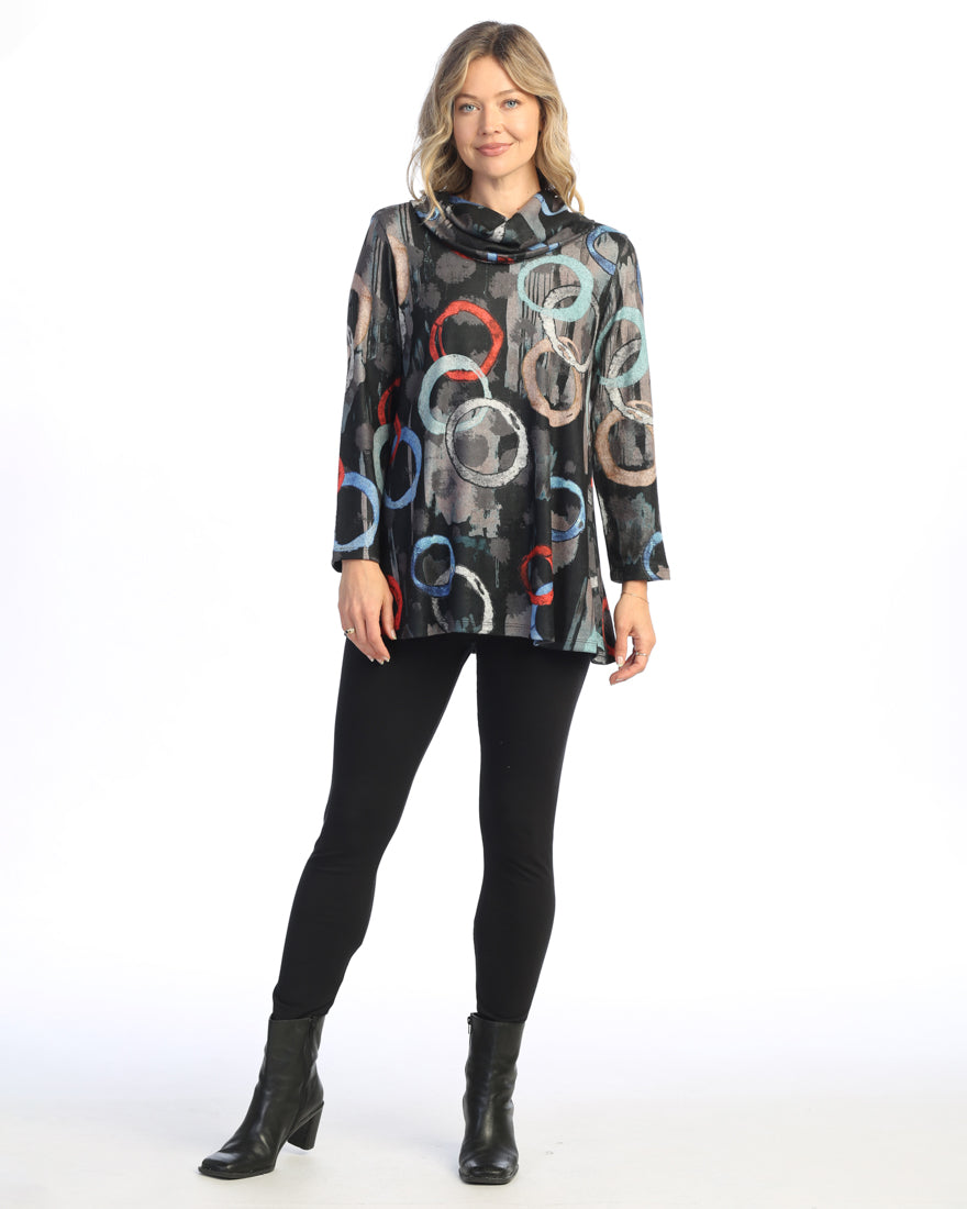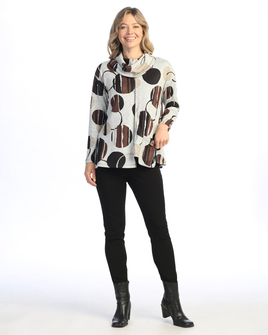Circle Pattern French Brushed Knit Cowl Neck Tunic