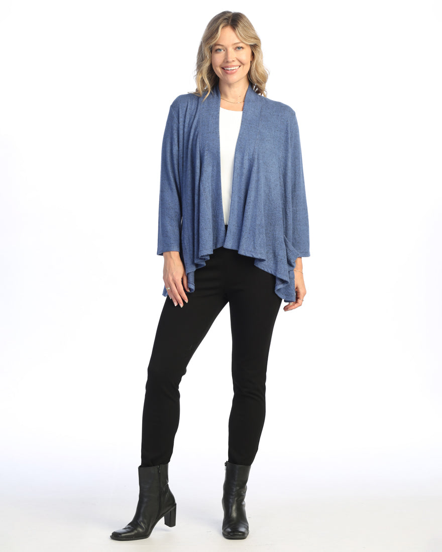 Cobalt Blue Brushed Hacci Draped Cardigan