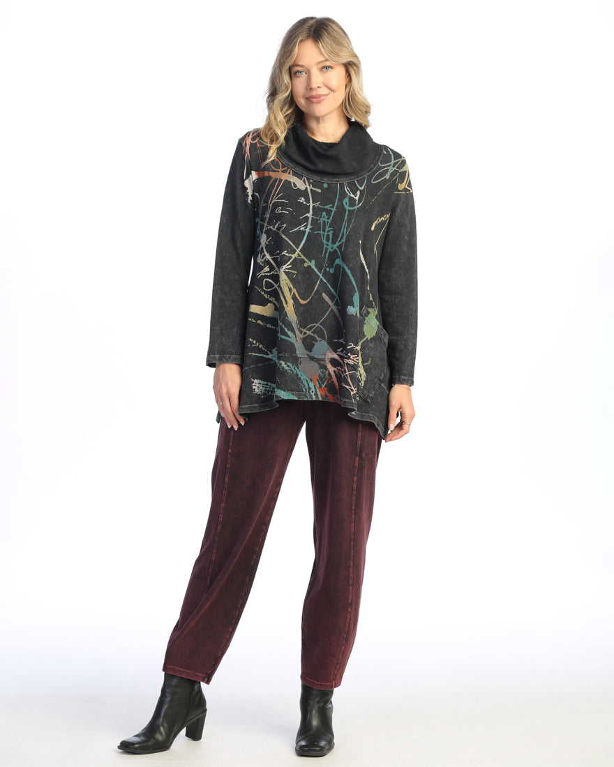Black Mineral Washed French Terry Cowl Neck Tunic