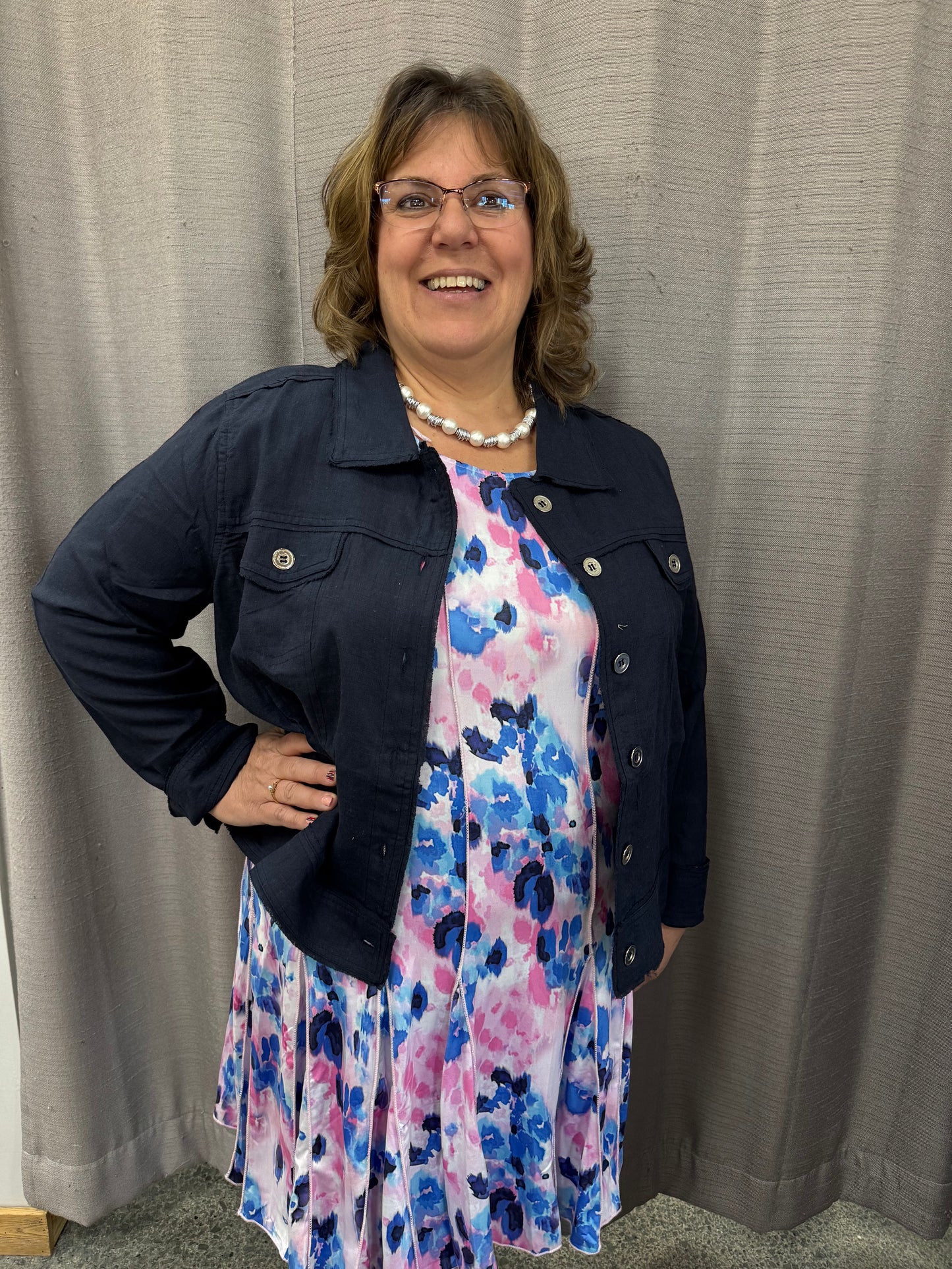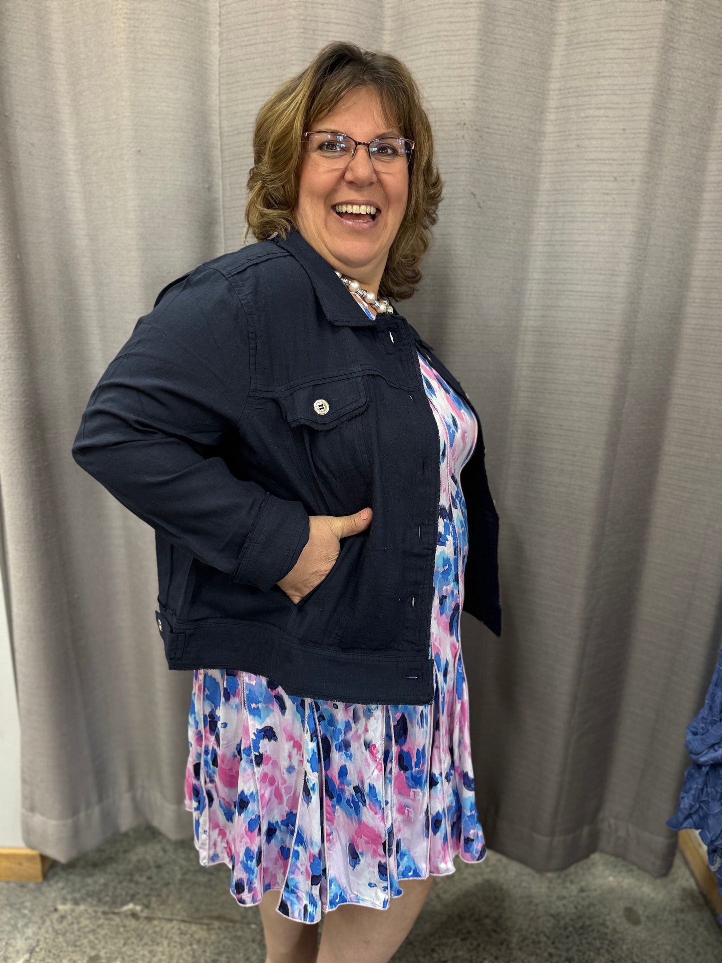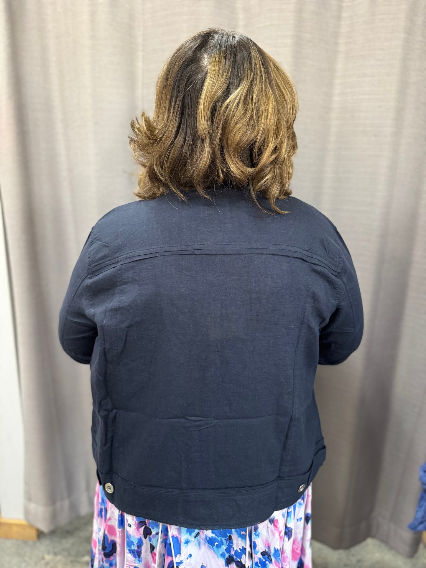 100% Linen Navy Blue Collared Button Down Jacket