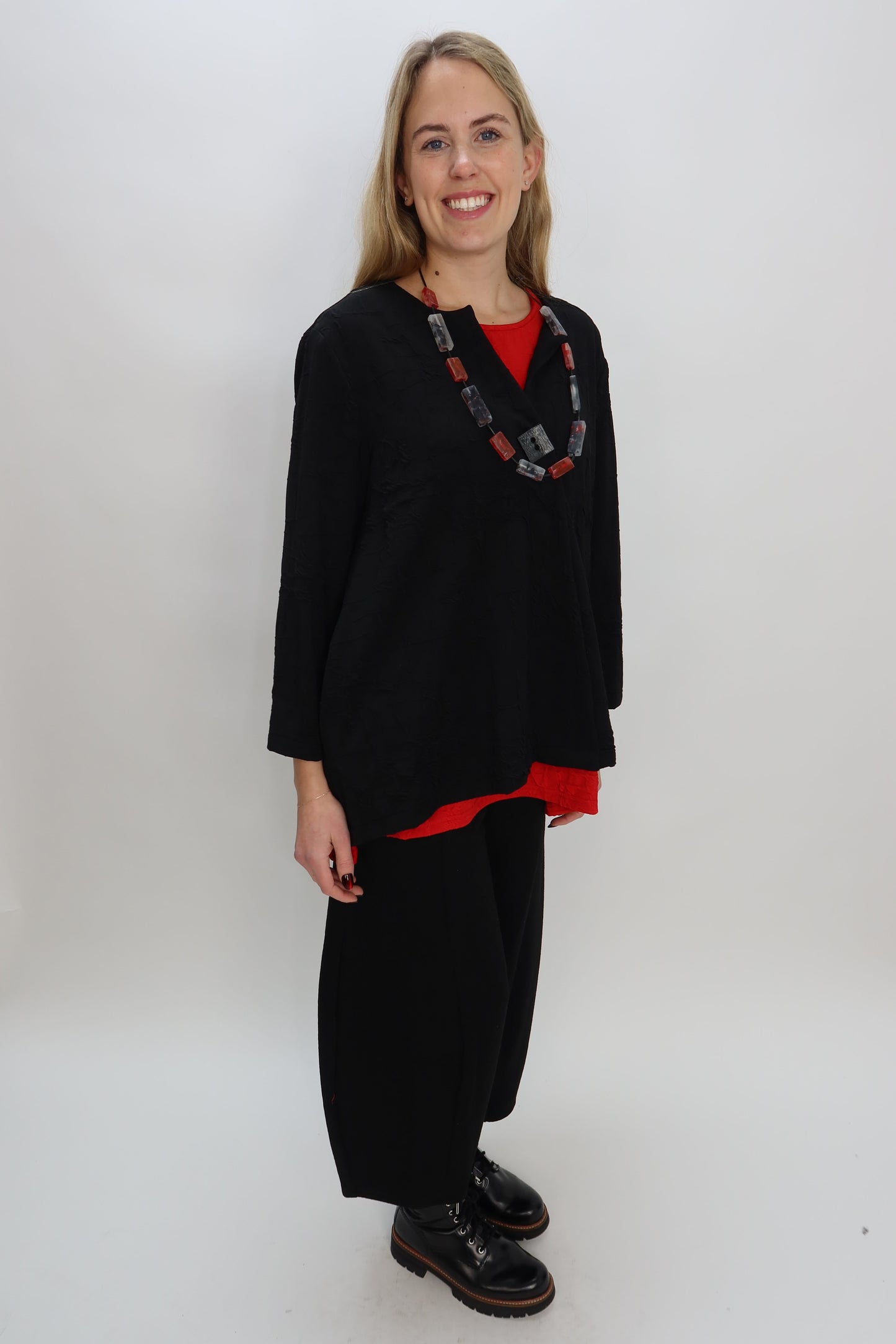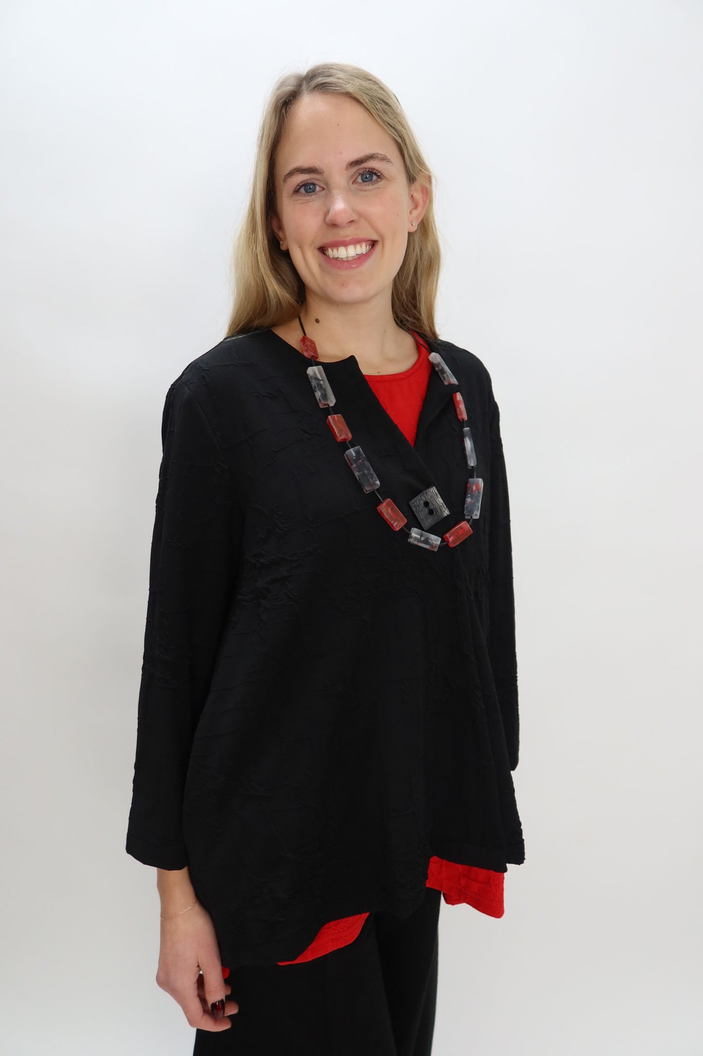 Elevate your wardrobe with this charming Black Pucker One Button Jacket, featuring an adorable textured fabric that brings instant personality to any outfit. The long sleeves provide versatile coverage, while the playful pucker texture makes this piece undeniably fun to wear. Designed to coordinate seamlessly with other collection pieces, the signature square button ties the look together perfectly. Whether you're dressing up or keeping it casual, this jacket adds a delightful twist to your everyday style.