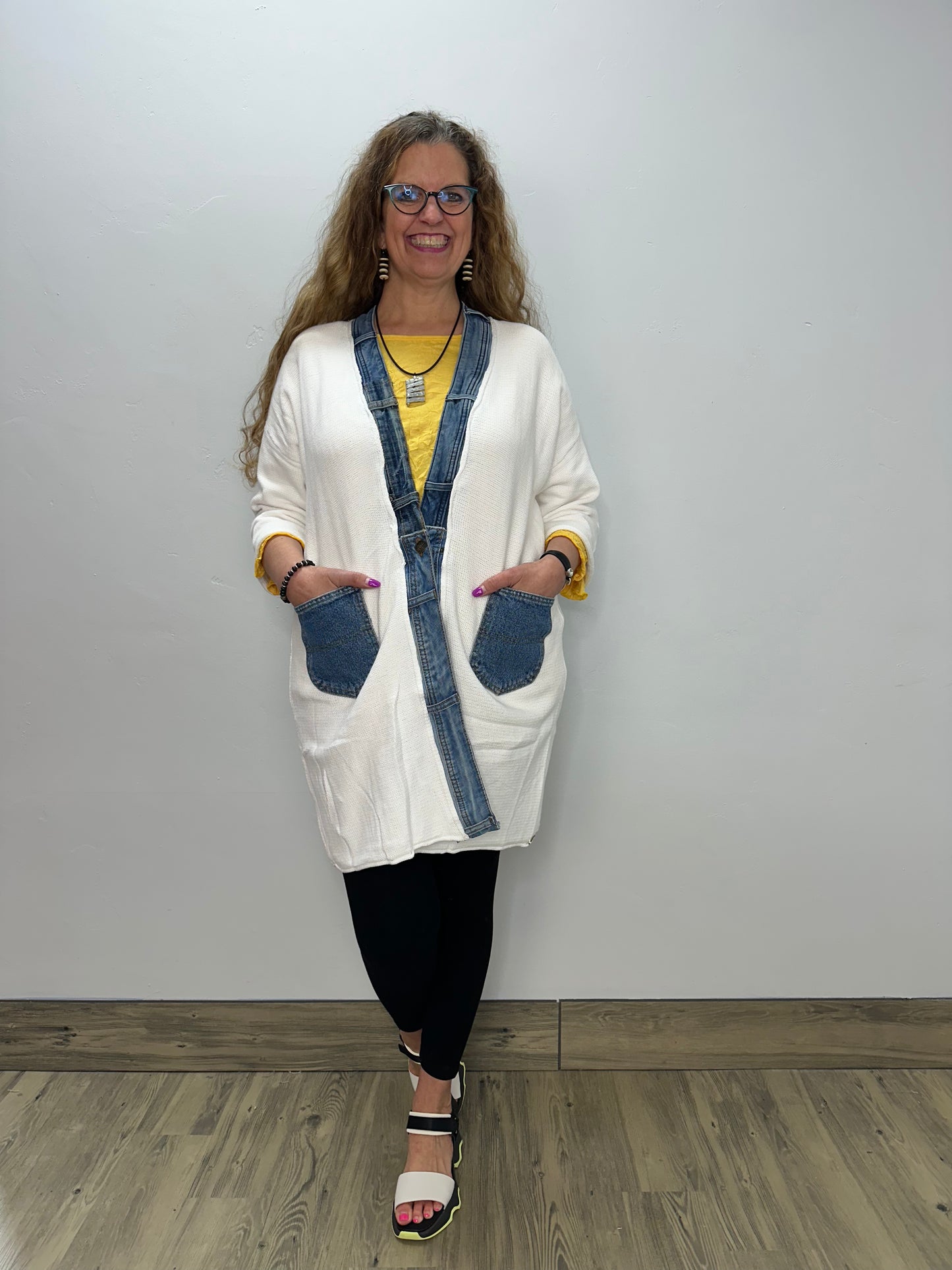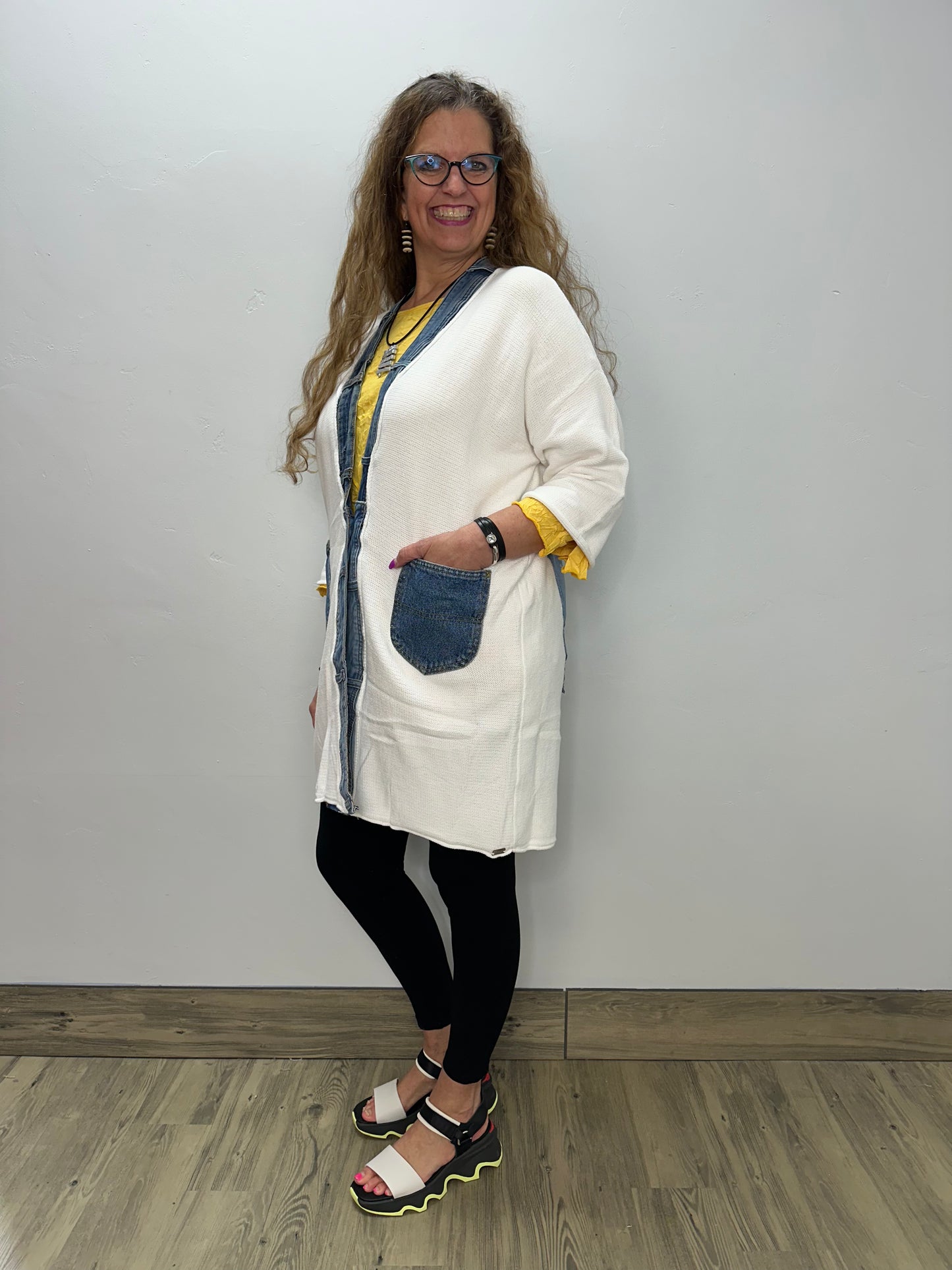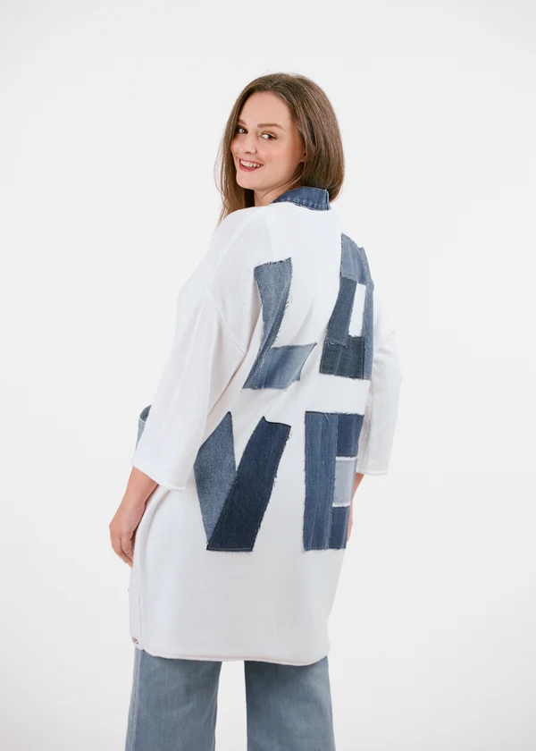 Love Recycled Denim 3/4 Sleeve Cardigan Jacket