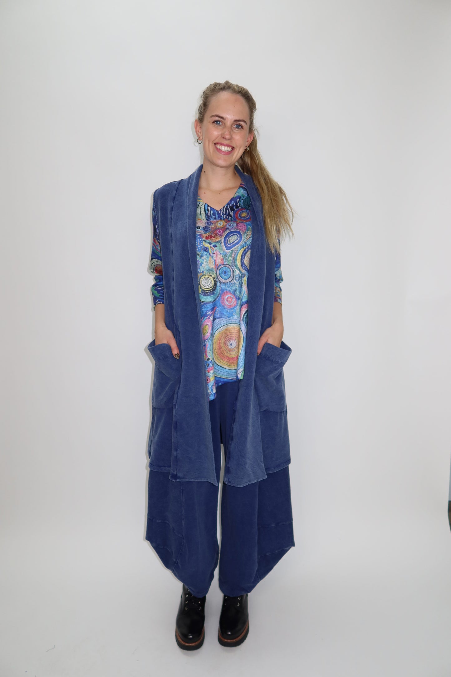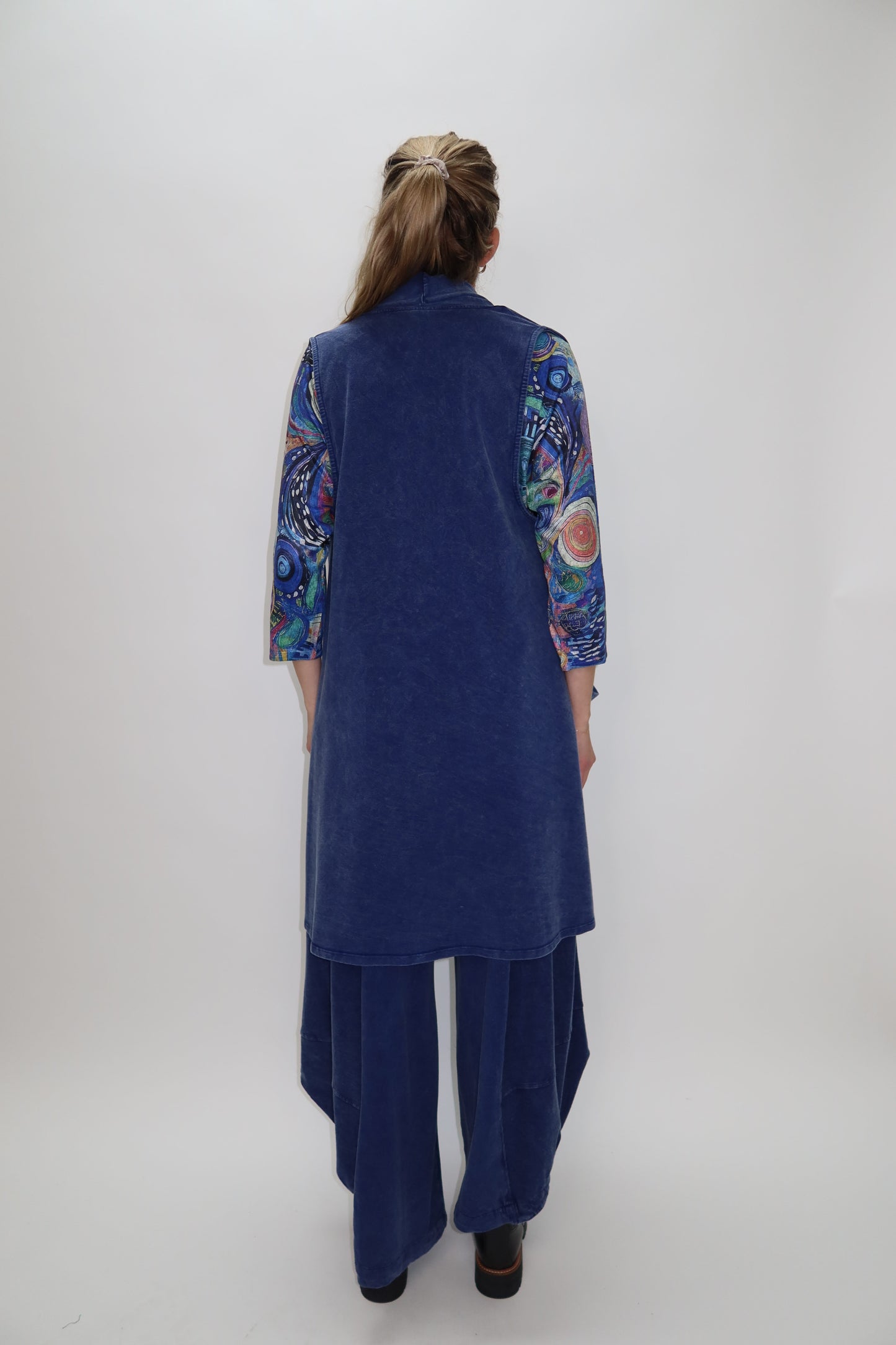 Denim Mineral Washed Sleeveless Two Pocket French Terry Vest