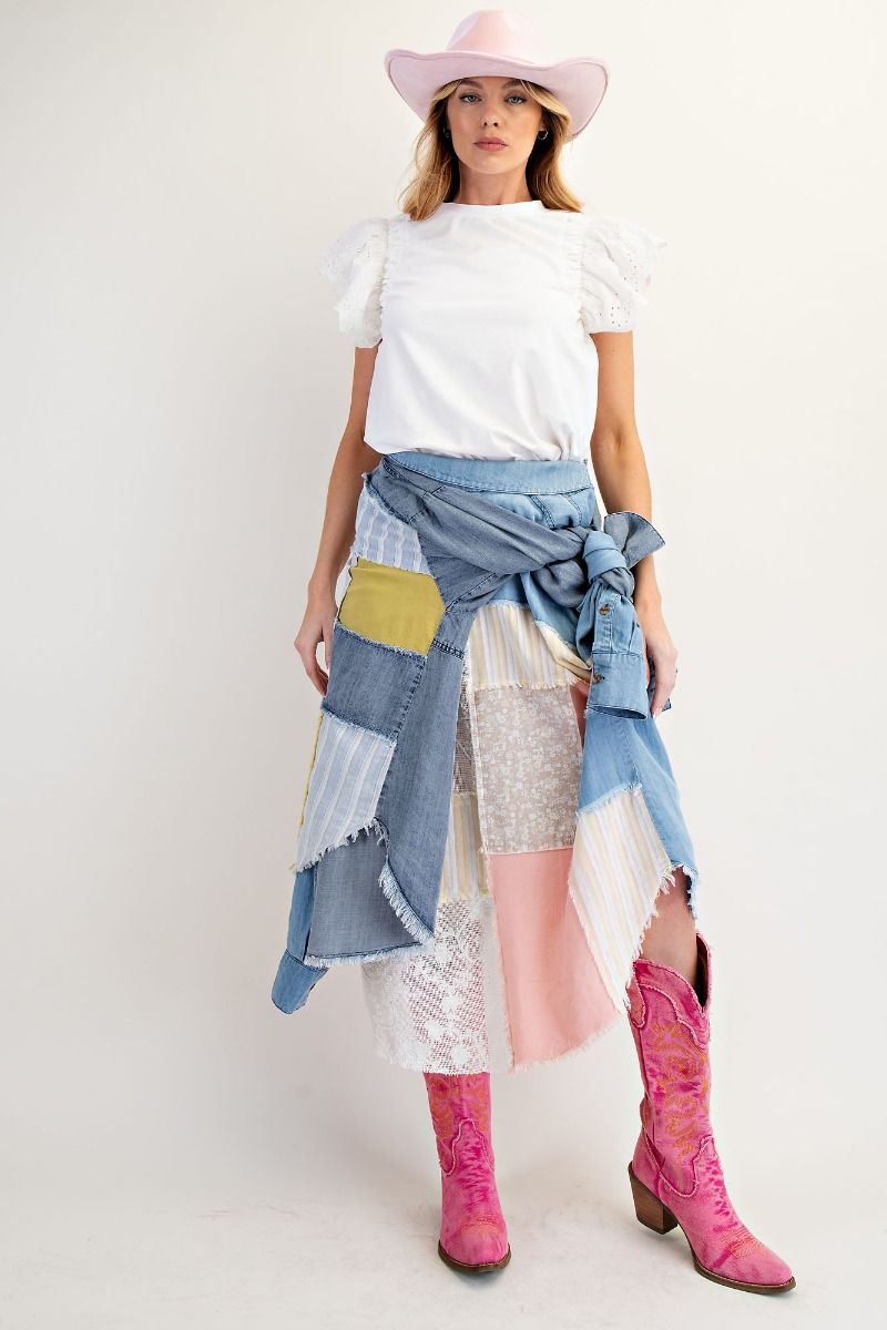 Mix & Match Patchwork Dark Chambray Button Down Shirt