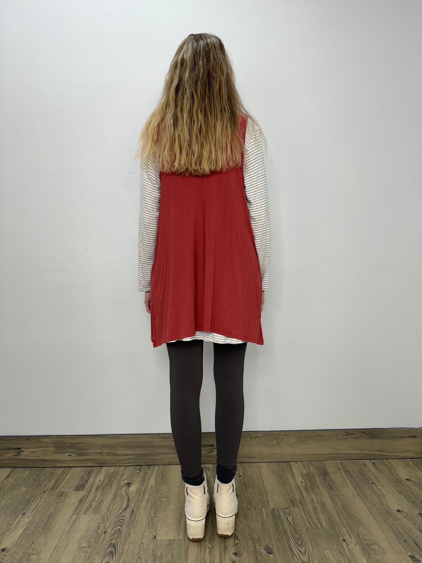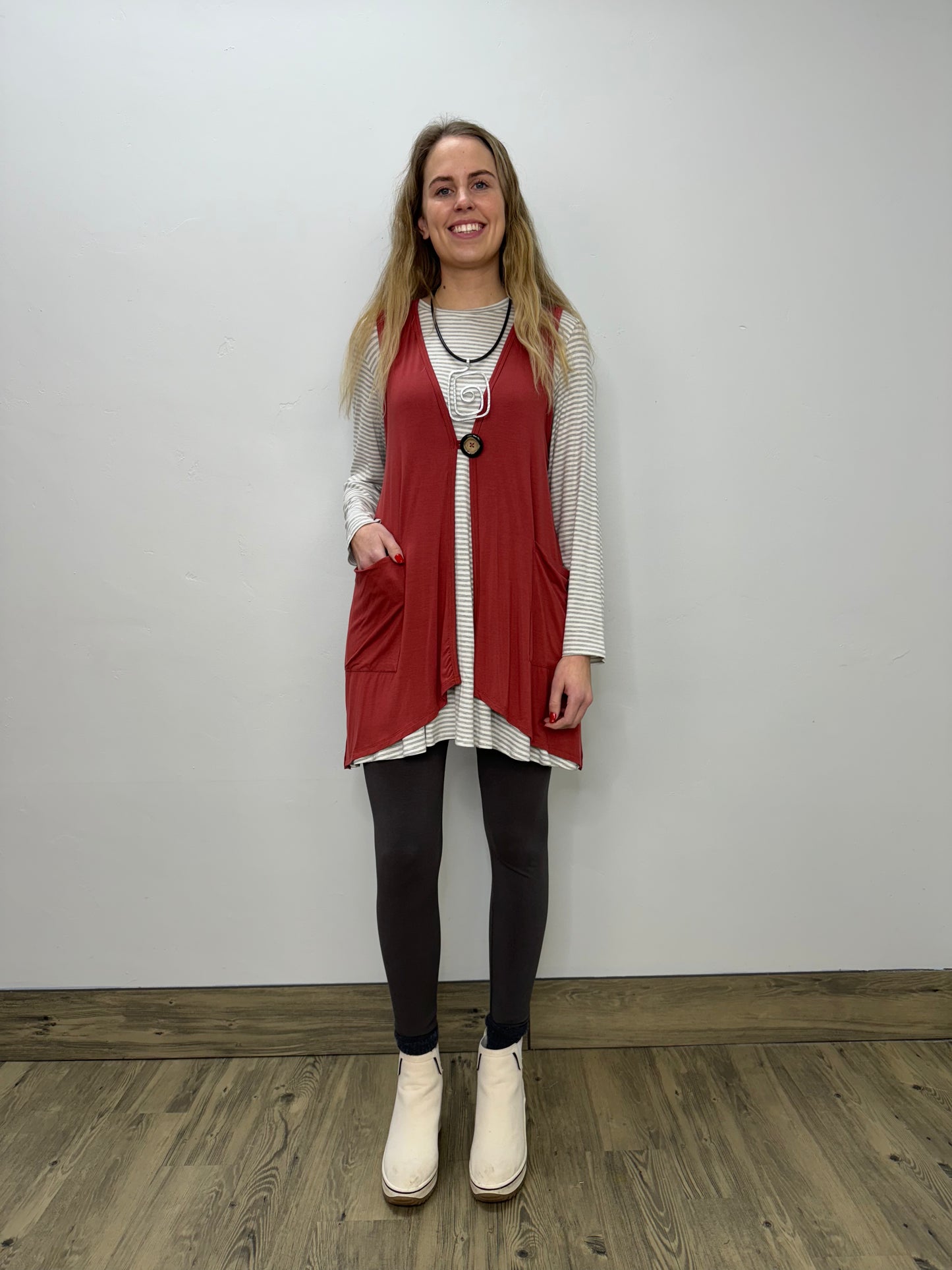Modal One Button Vest with Pockets - Paprika