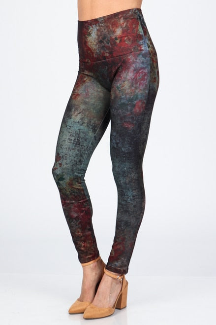 M.Rena high waist leggings feature their iconic tummy control waistband, a thicker denim twill knit, and a floral canvas painting design.