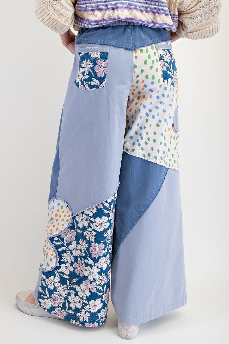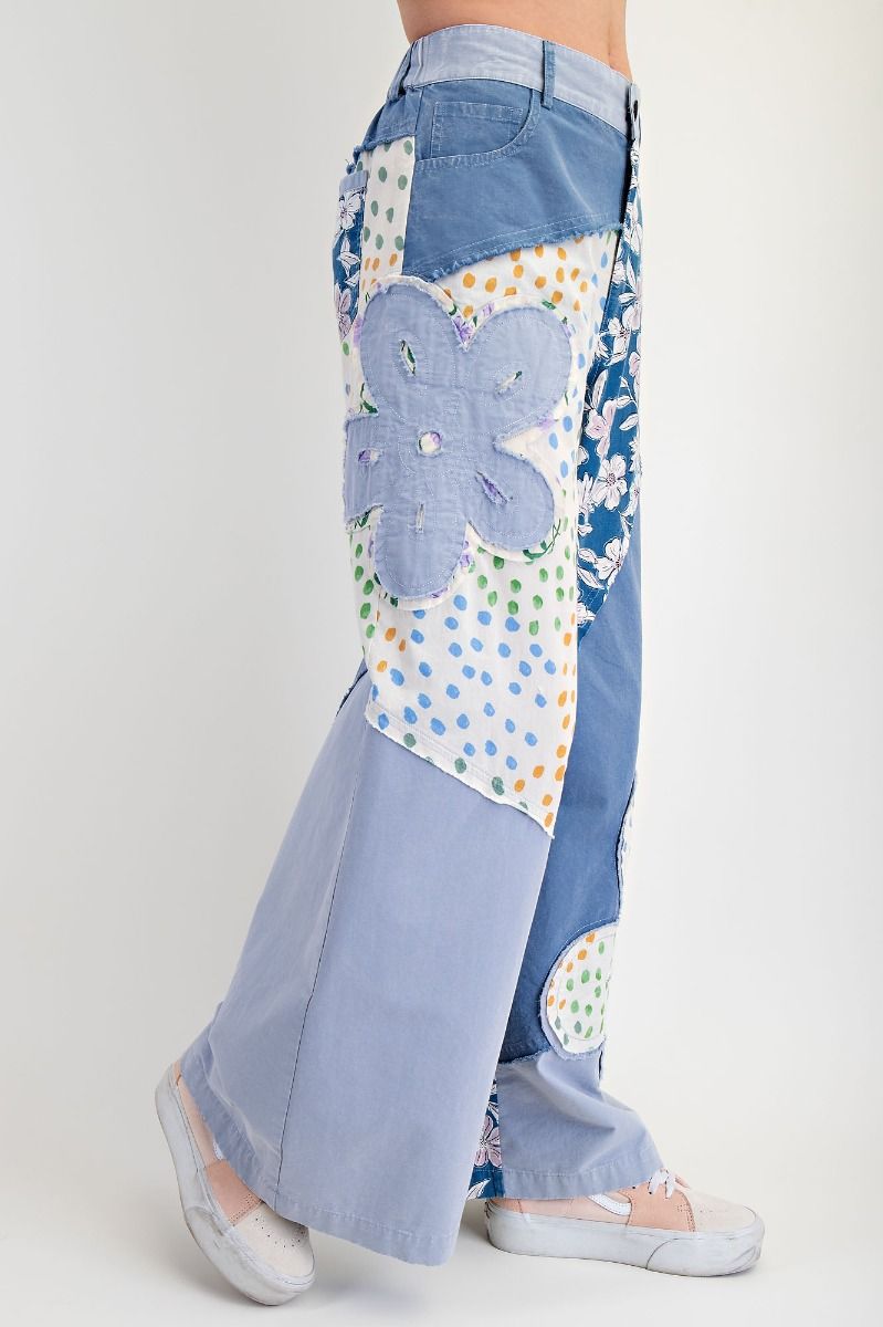 Introducing our Flower Patch Print Mixed Up Mineral Wash Pants! These stylish pants feature a unique mix of colorful flower patch and print, adding a touch of personality to your wardrobe. With a button and zip fly closure, front and back pockets, and raw cut seams, these pants blend fashion and function effortlessly. The stretchy back waistband and relaxed, loose fit provide all-day comfort. Upgrade your look with these wide leg silhouette pants!
