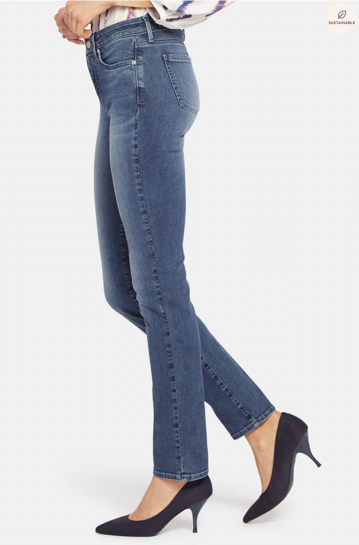 Regular price $35.70Prepare yourself for more than a few admiring stares. NYDJ’s Sheri Slim Jeans feature an expertly cut fit that’s always in season. Enhance your assets and streamline your silhouette with our signature Lift Tuck® Technology, which flattens and flatters using a proprietary slimming panel with a patented criss-cross design. Features classic five-pocket styling, zip fly and button closure.