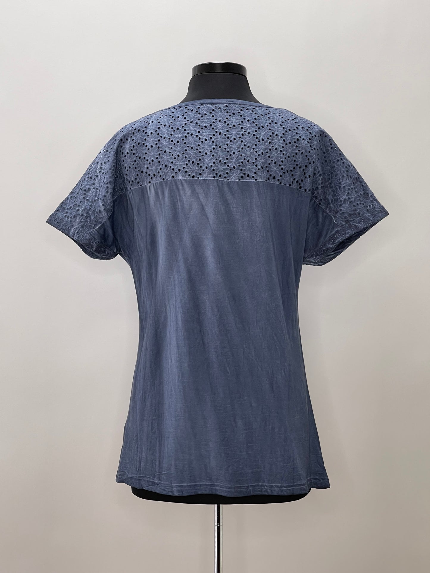 Regular price $39.50This Short Sleeve Mineral Wash Top with Star lets you make a statement! This unique piece features a subtle yet eye-catching star on the front, eyelet pattern in the back, and a flattering scoop neck. Feel comfortable and confident sporting this chic and ultra-stylish top that you can dress up or down!