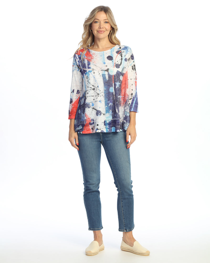 Elevate your summer style with this gorgeous Americana Boucle Mesh Tunic Top With Burnout Lining. Boasting double layered fabric, a lovely color palette and lightweight feel, this 3/4 sleeve top is sure to turn heads wherever you go. Dare to be different and make a bold fashion statement with this piece!