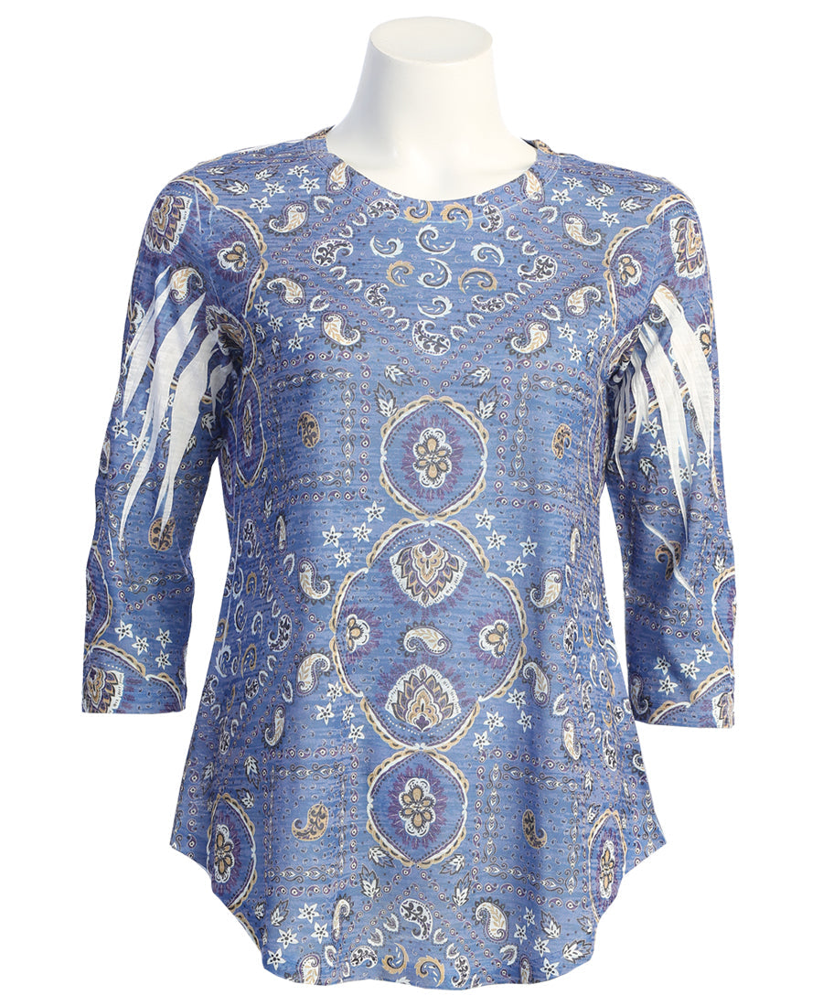 Blue Moon Burnout 3/4 Sleeve Tunic Top With Round Hem