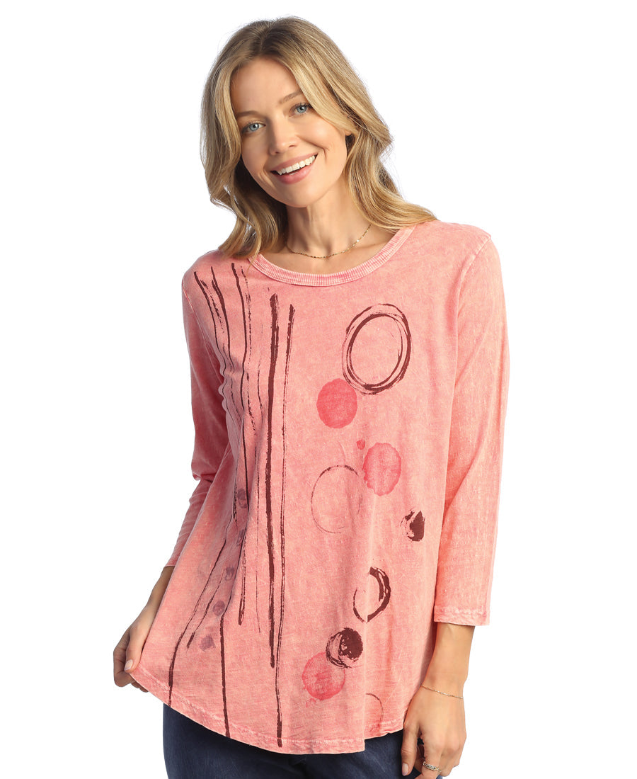 Feel the softness of our Lollipop 3/4 Sleeve Mineral Washed A-Line Tunic Top and fall in love with its lovely abstract design. Enjoy the comfort of its 100 percent cotton fabric and its pre-washed, pre-shrunk texture. With the confidence of its crew neck and 3/4 length sleeve, show off your unique style on any special day. Will you be the next one to feel the beauty of this special piece?