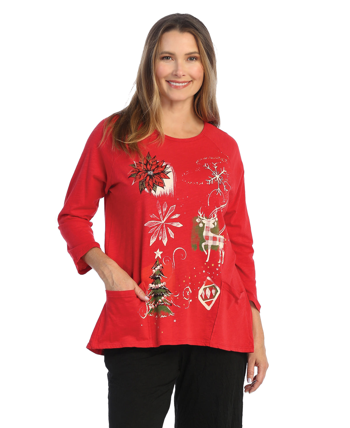 Jet Red Treasures Holiday 100% Cotton Two Pocket Tunic