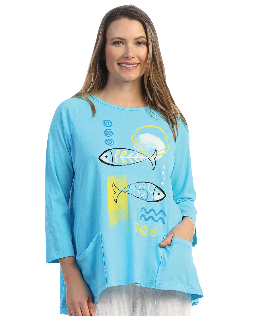 Mineral Washed 100% Cotton Slub Patch Pockets Tunic Top by Jess and Jane.