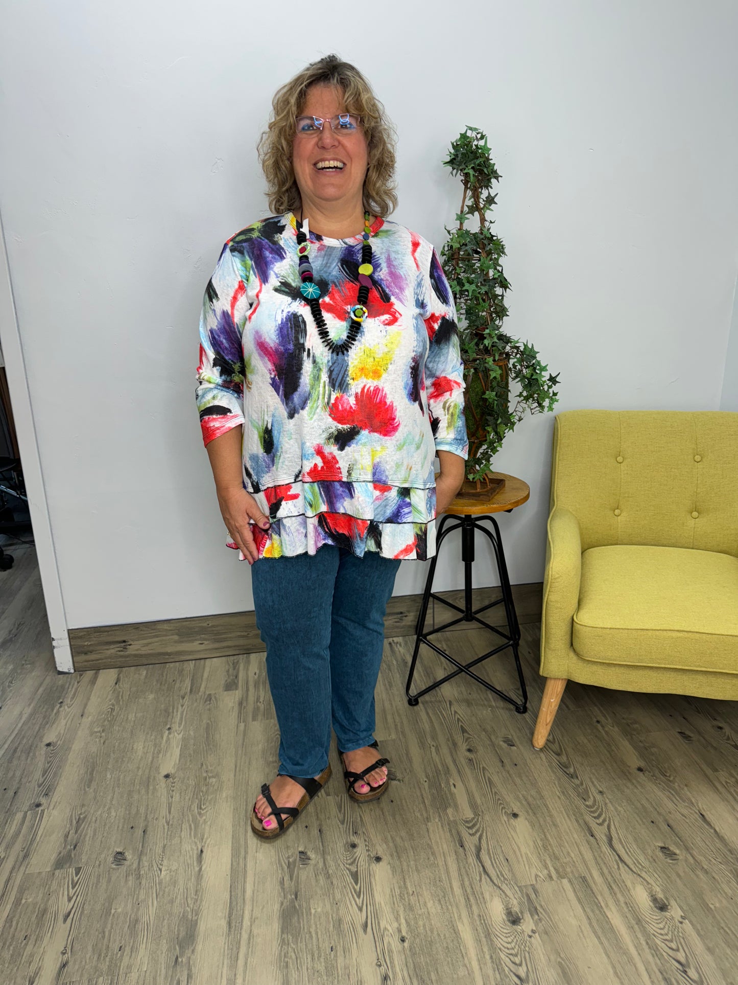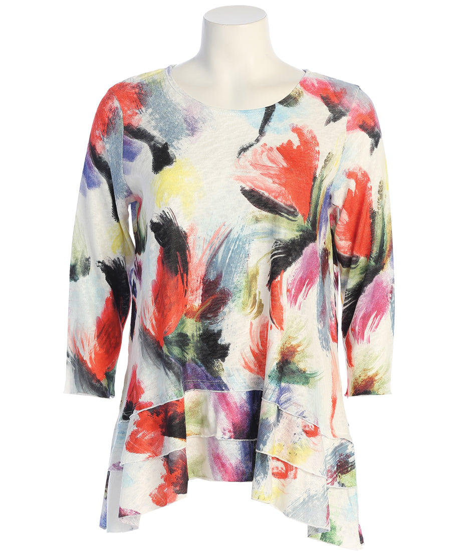 Are you ready to turn heads with style and sophistication? Our light weight knit layered tunic is made with a soft, comfortable material and features a slight shark bite, 3/4 sleeves, and a double ruffle bottom for dynamic appeal. The beautiful colors complete the look, perfect for making any outfit pop! Step out confidently in this stunning and unique piece.