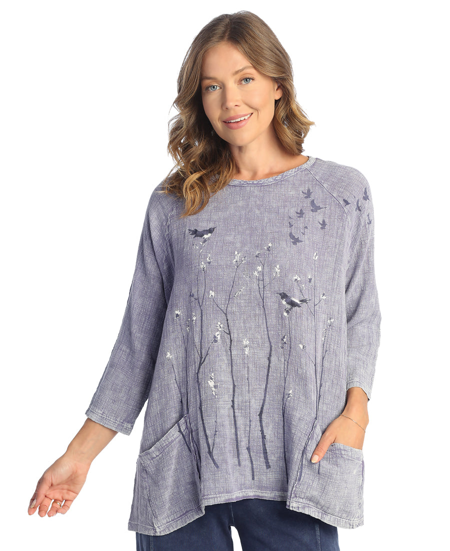 Prairie Mineral Washed Gauze Tunic Top With Patch Pockets