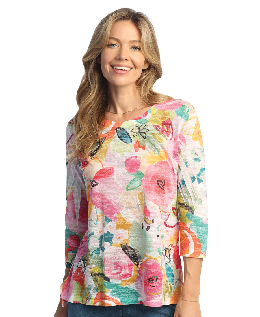 Get ready for spring and summer with our Sangria Floral Burnout Hi-Low Tunic! This lightweight top features a stunning floral pattern, 3/4 sleeves, and a round neck. Perfect for any warm weather occasion, this tunic will keep you cool and stylish.