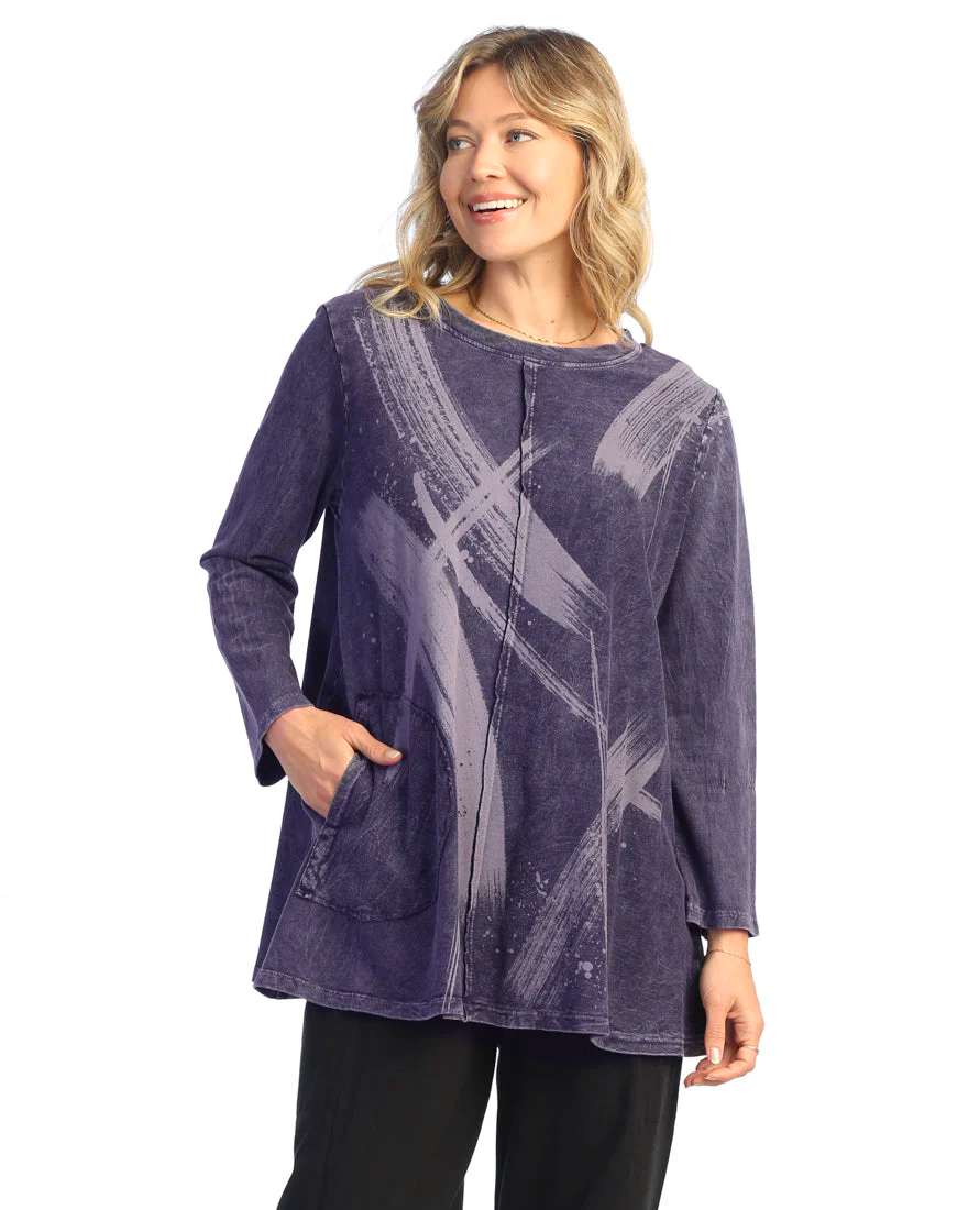 Indulge in the luxurious comfort of this Jess and Jane Mineral Washed 100% Cotton Slub Tunic Top! A crew neckline, 3/4 sleeves, and two front patch pockets make this tunic an absolute dream to wear, while its mineral wash ensures the fabric looks refined and elegant. Treat yourself to an unforgettable wardrobe staple!