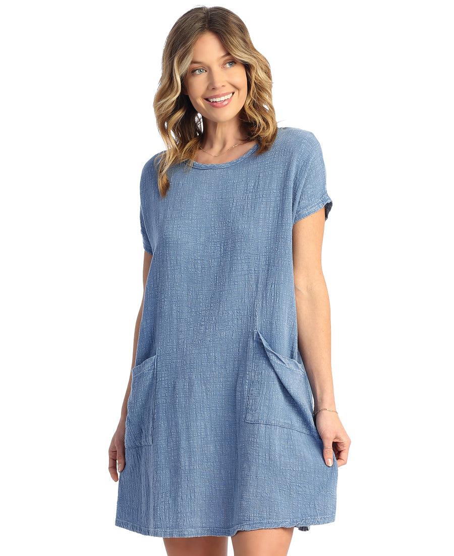 Marine Mineral Washed Crinkle Cotton Dolman Sleeve Dress