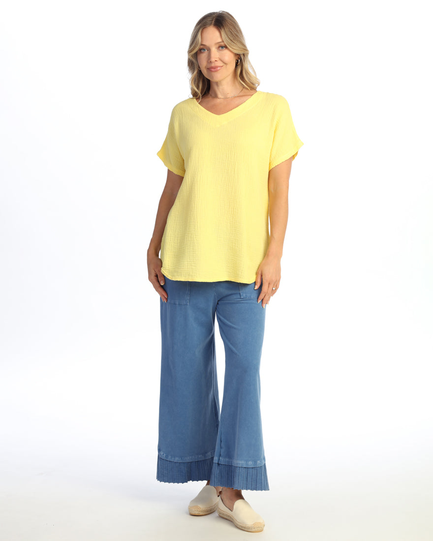 Lemon Yellow Short Sleeve Cotton Gauze Top