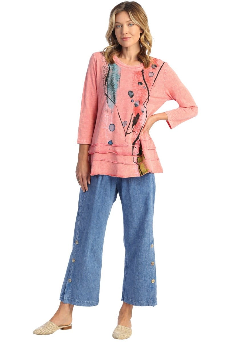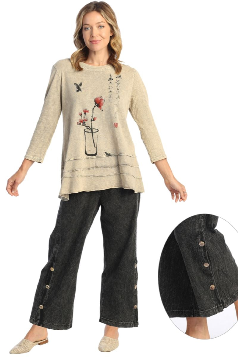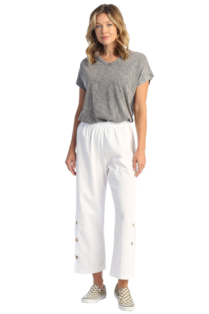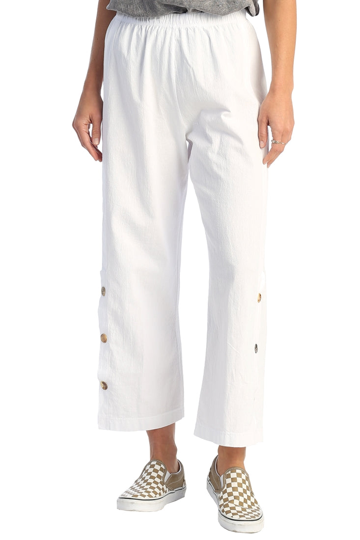Mineral Washed Crinkle Cotton Pants with Button Accents