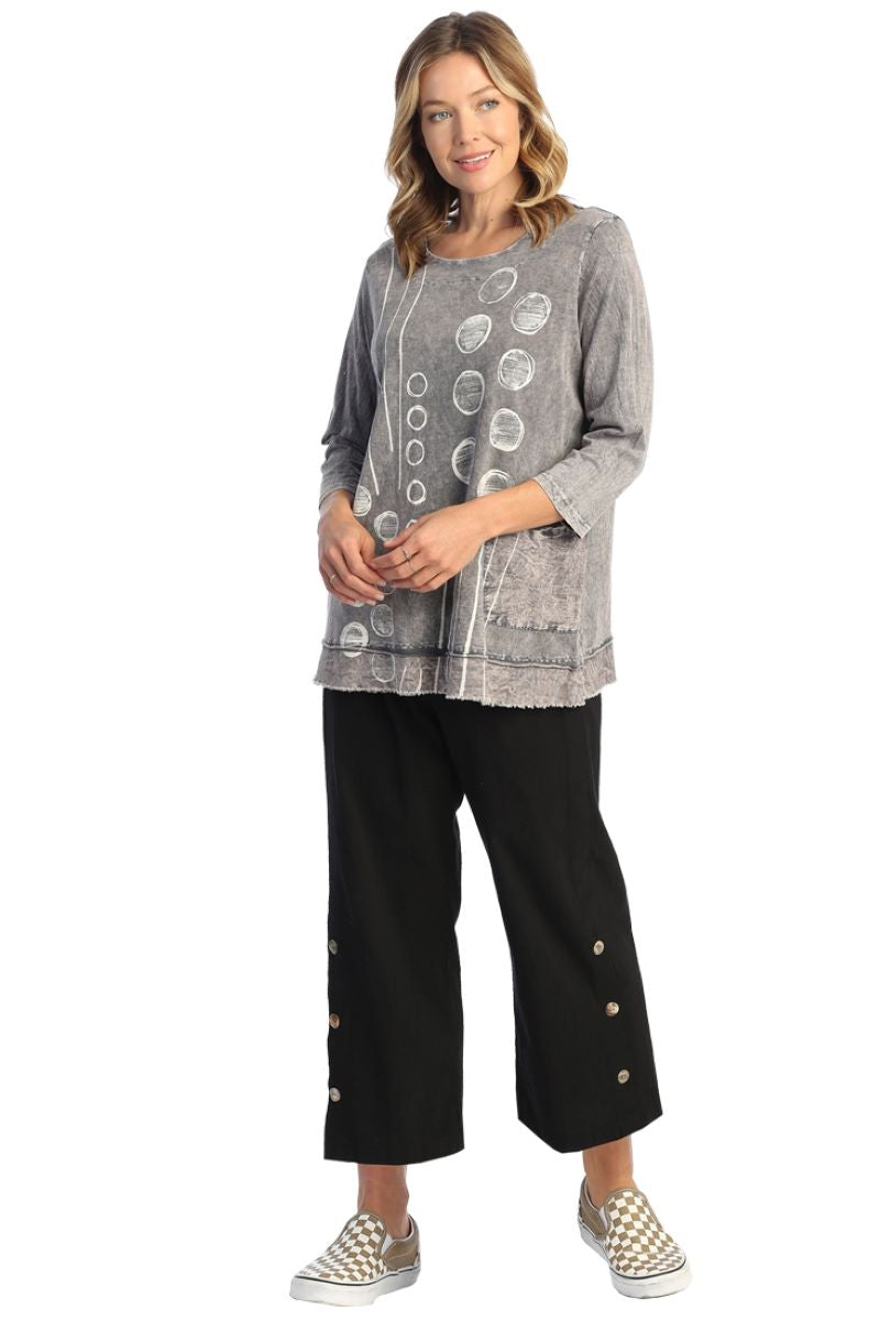 The full-length mineral washed Jess and Jane crinkle pants with button accents are designed with an elastic waistband and a stylish casual look.