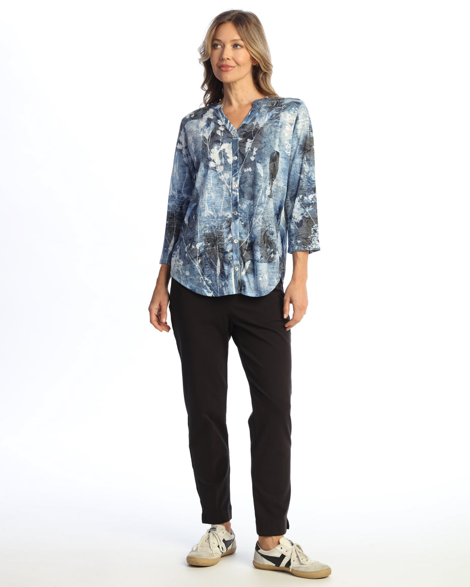 Introducing our stylish Blue Pattern Button Down Shirt with Mandarin Collar! This shirt features a lovely button down design and a beautiful pattern that is sure to catch everyone's eye. The 3/4 length sleeves and mandarin collar add a touch of elegance, while ensuring comfort. Get yours today and elevate your wardrobe!