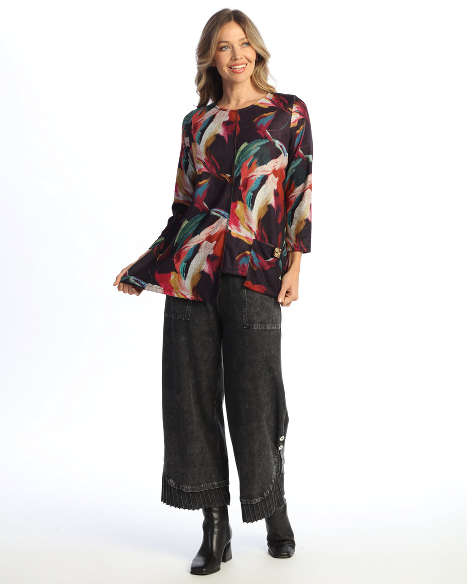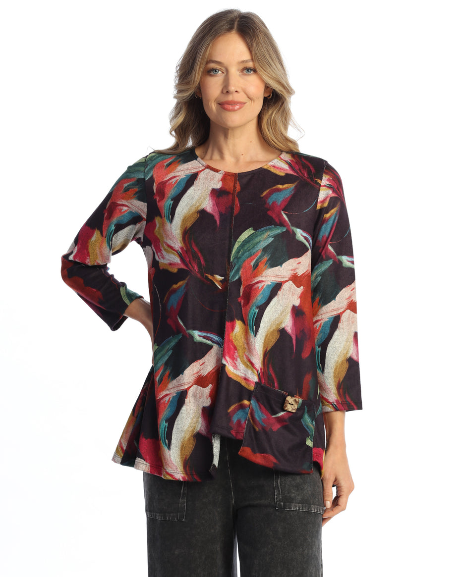 Wine Pattern French Brushed Knit Tunic Top With Patch Pocket