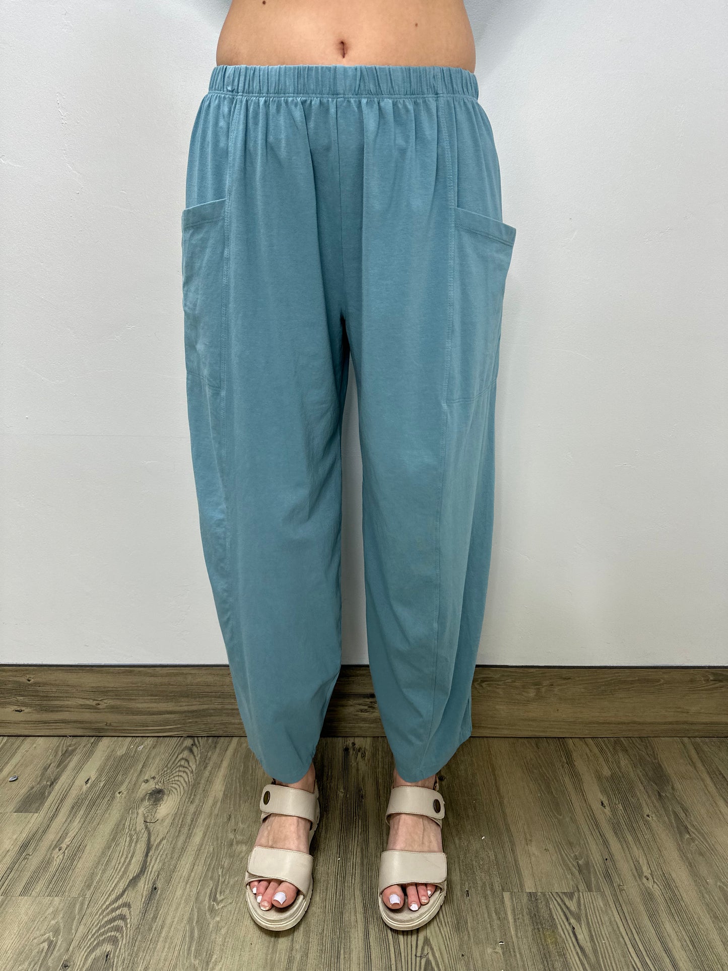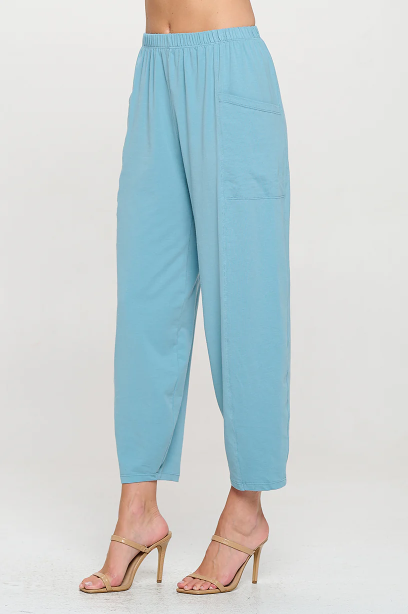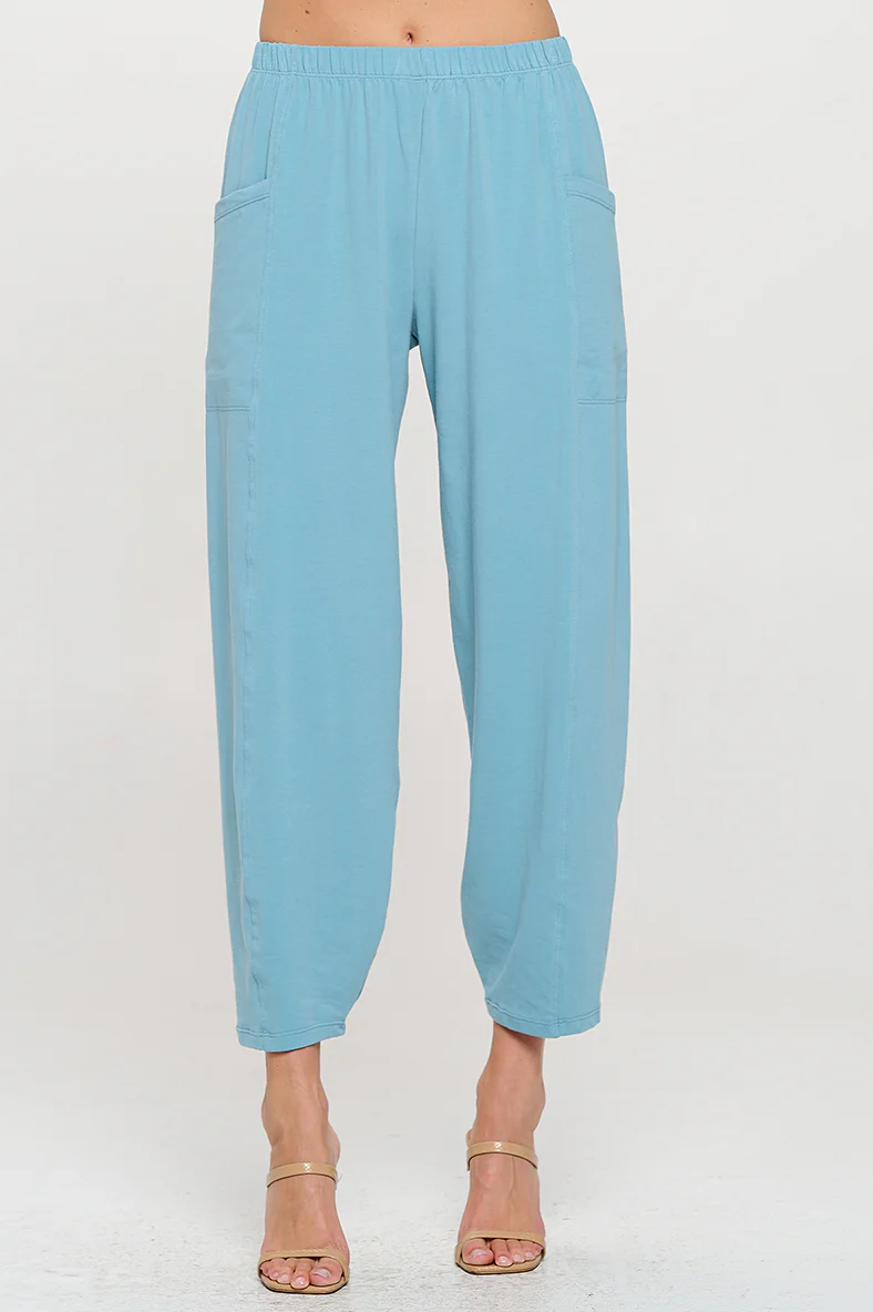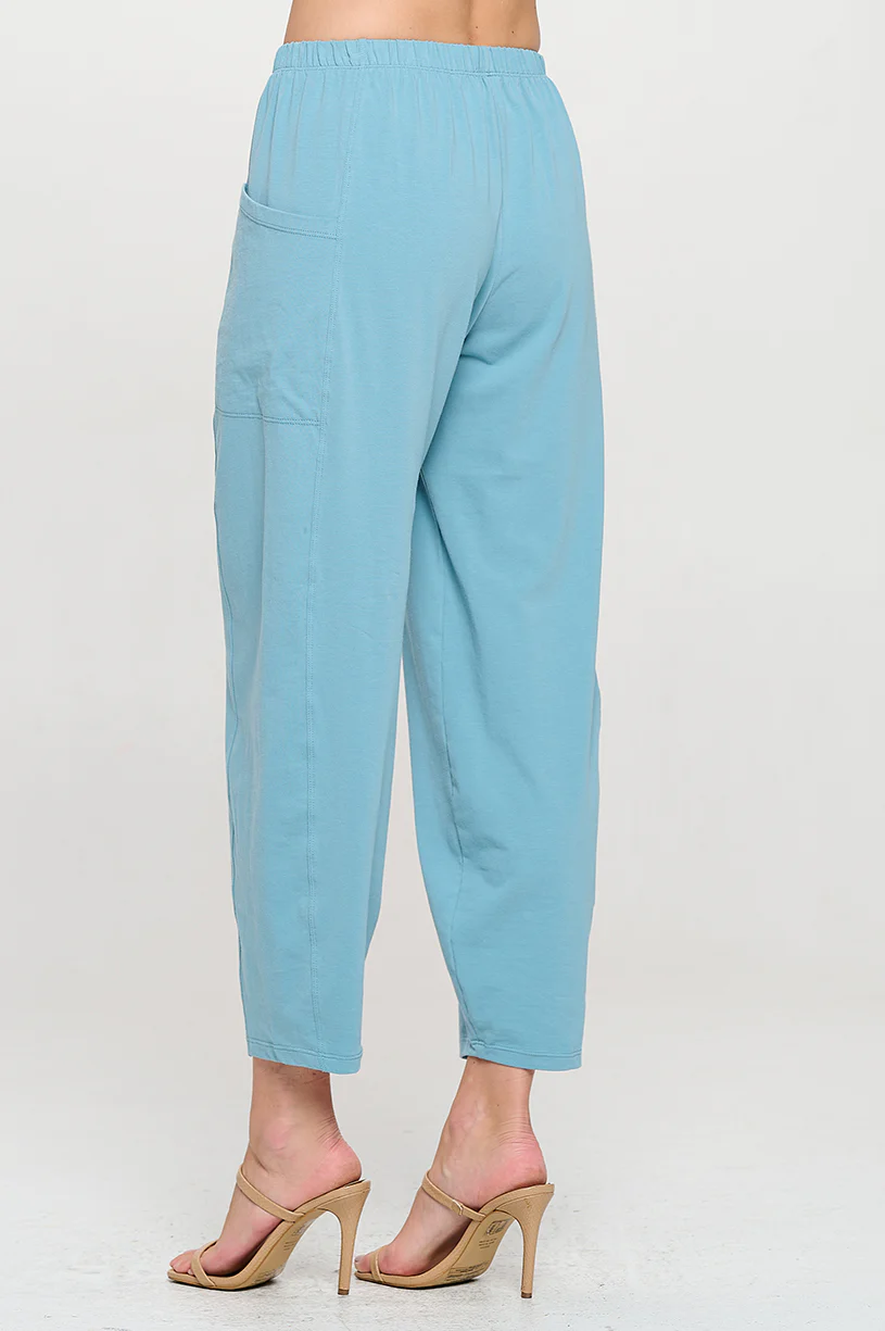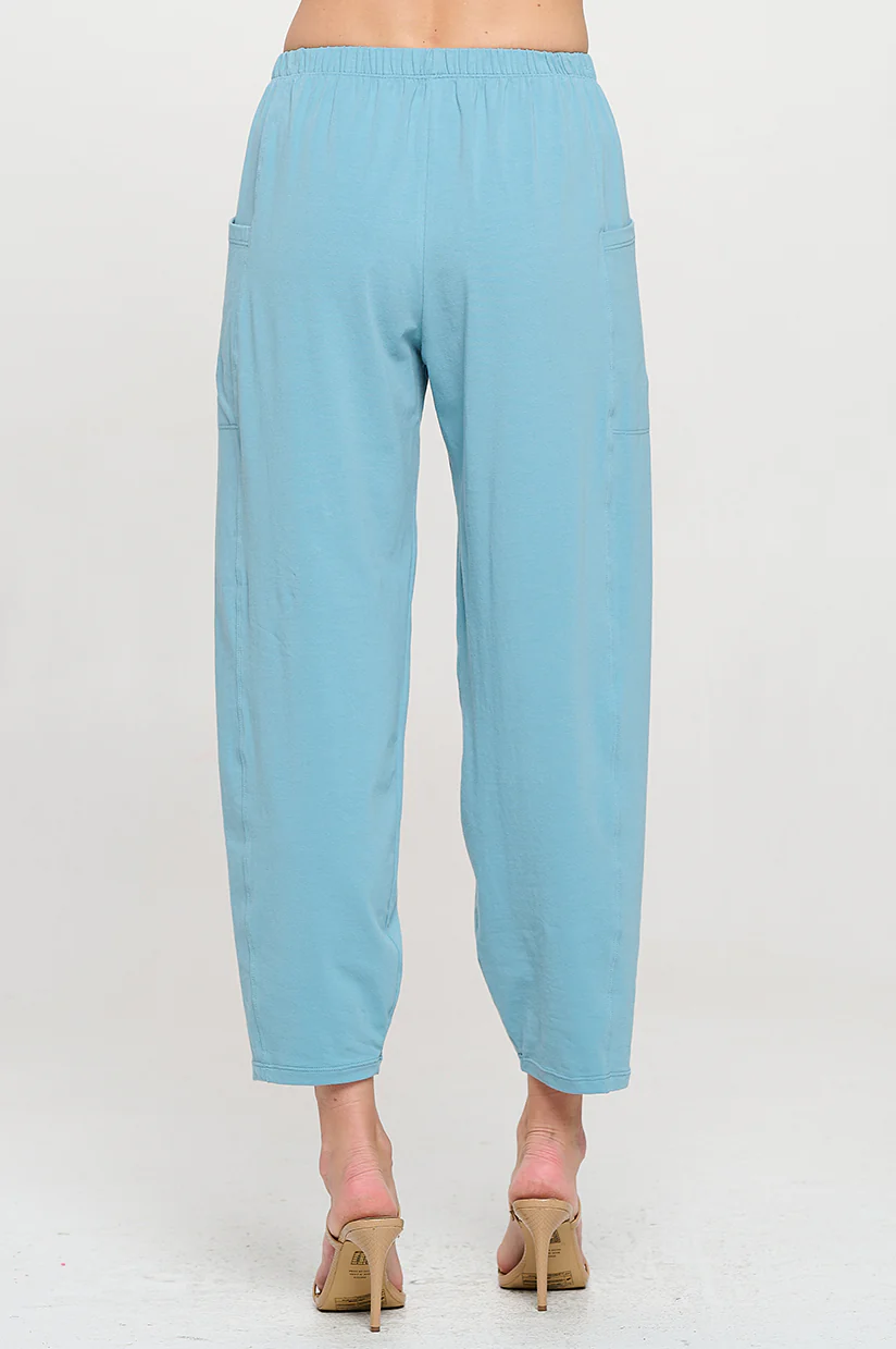 Azure Cotton Lantern Pants With Side Patch Pocket
