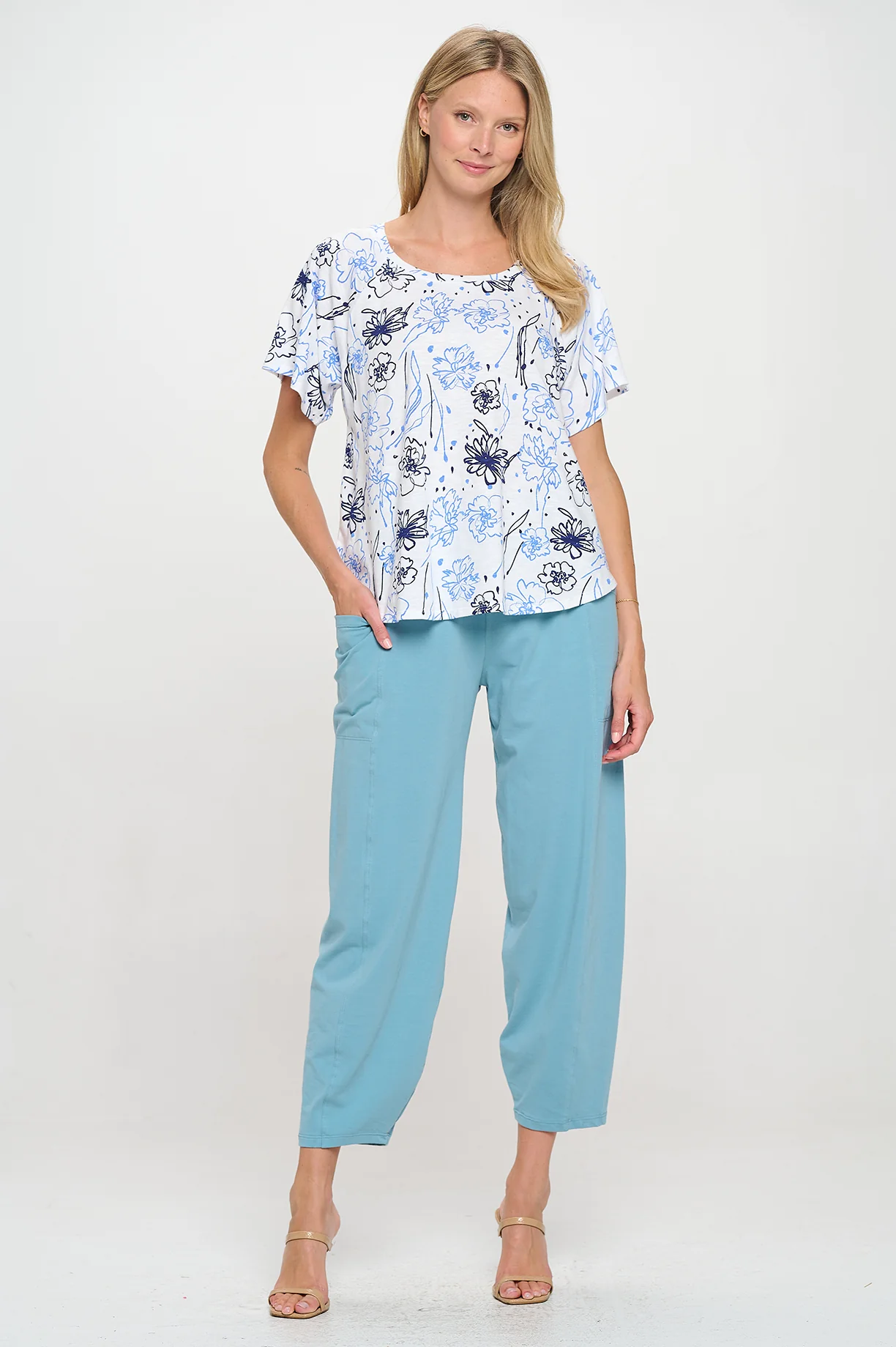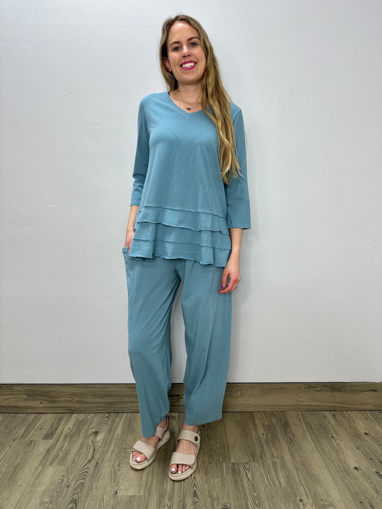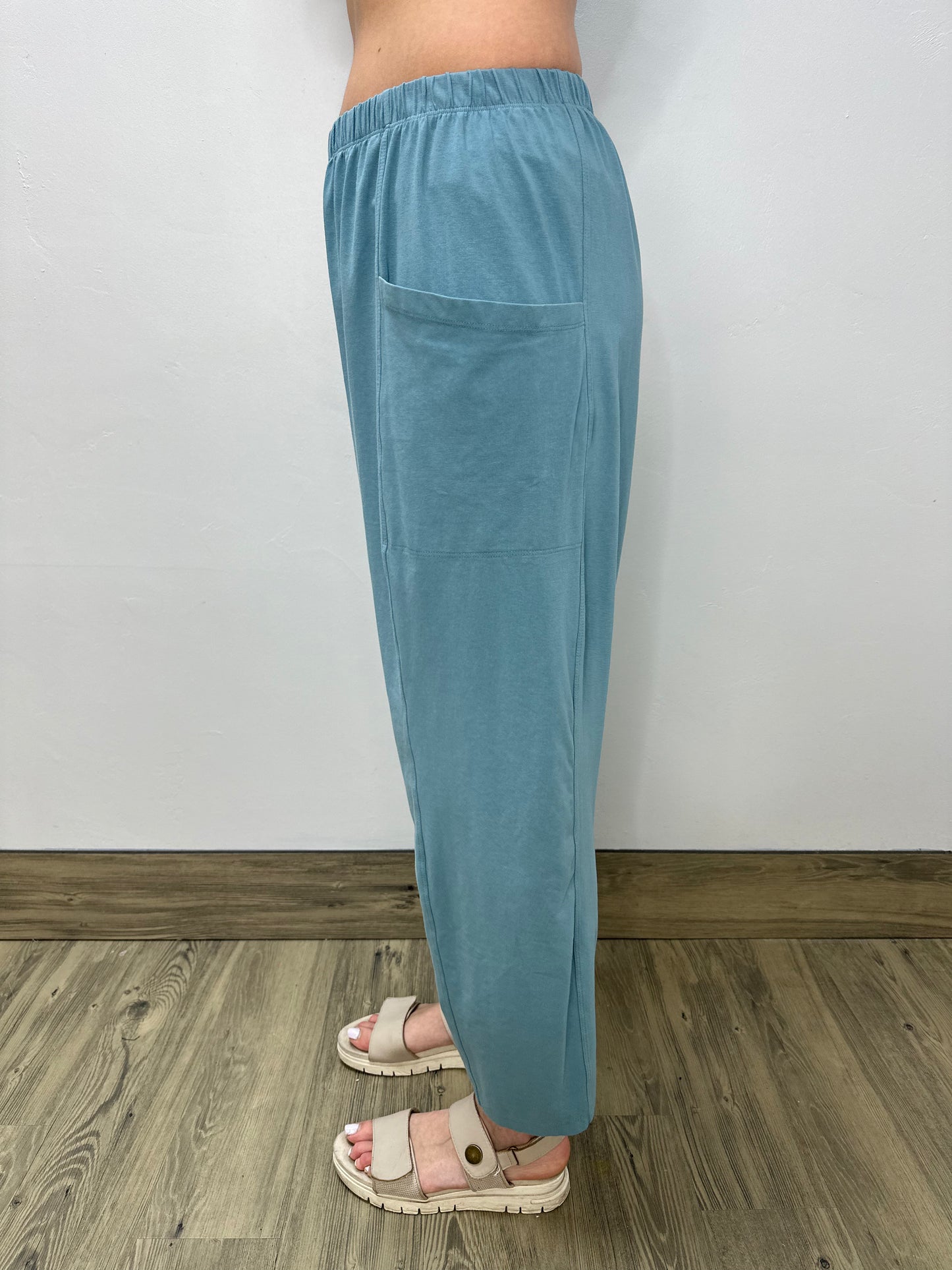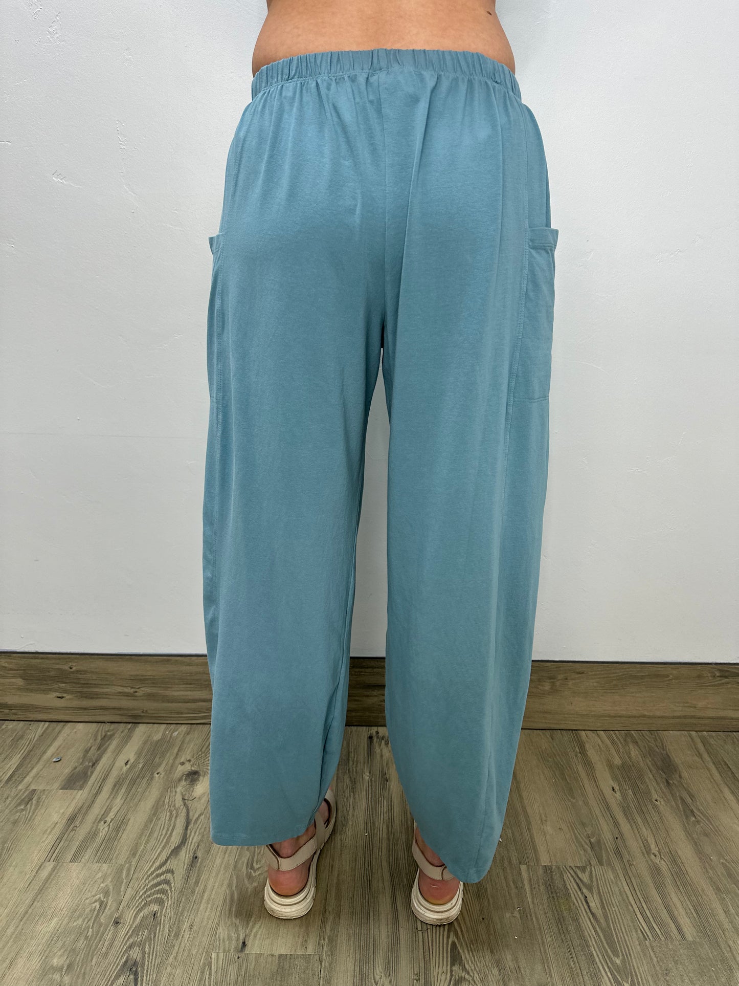 Azure Cotton Lantern Pants With Side Patch Pocket