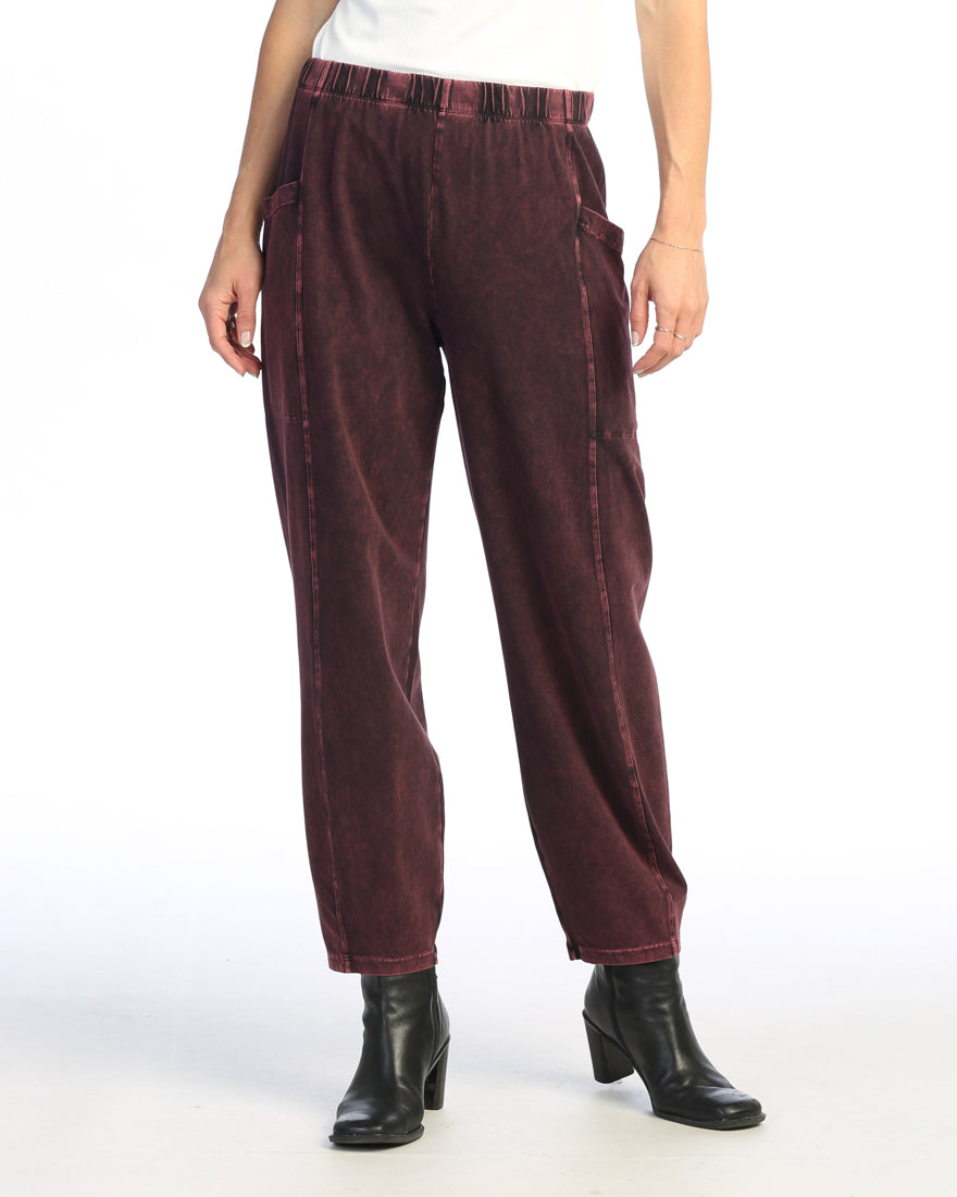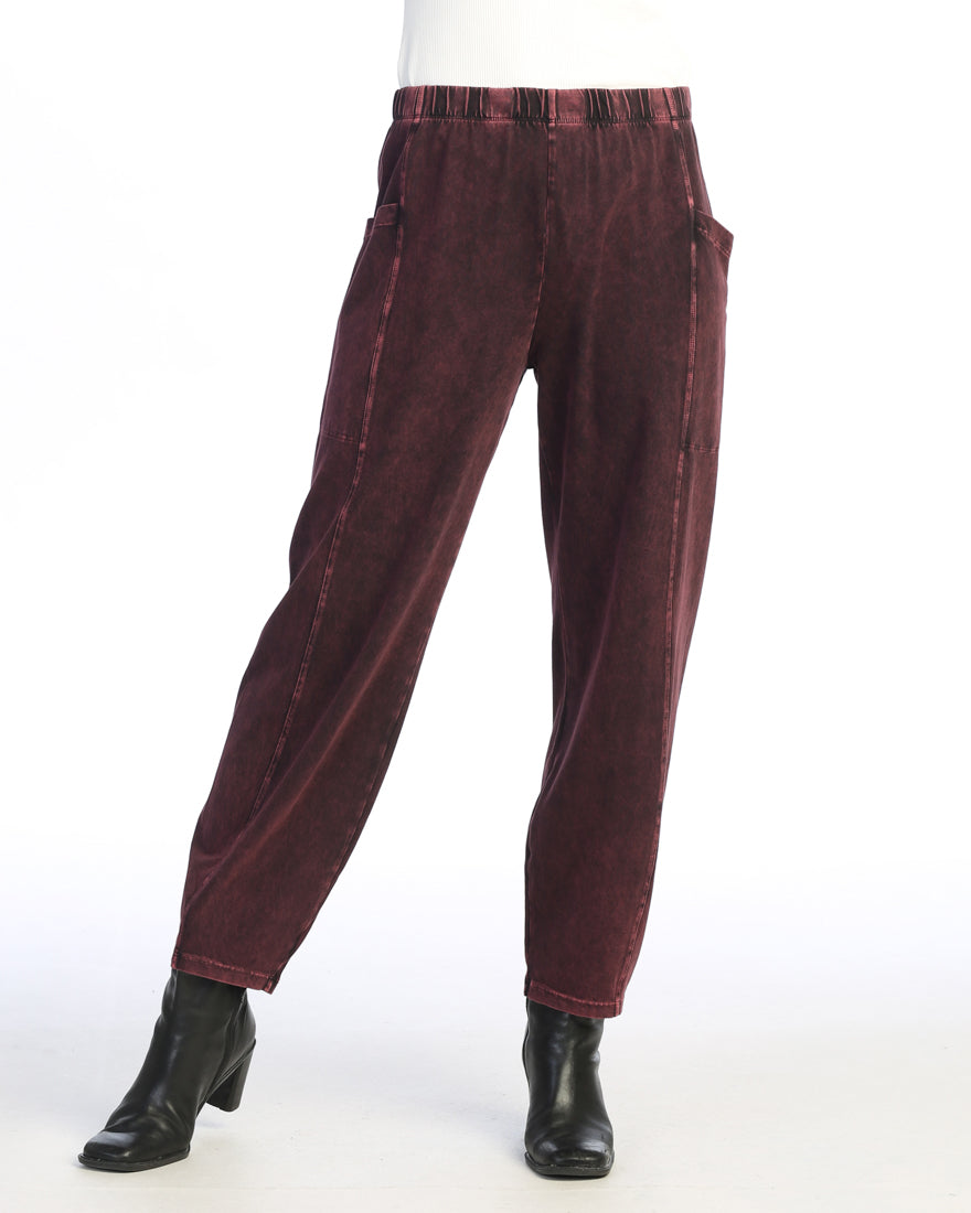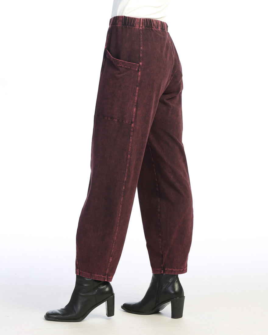 Wine Mineral Washed Cotton Lantern Pants With Side Patch Pocket