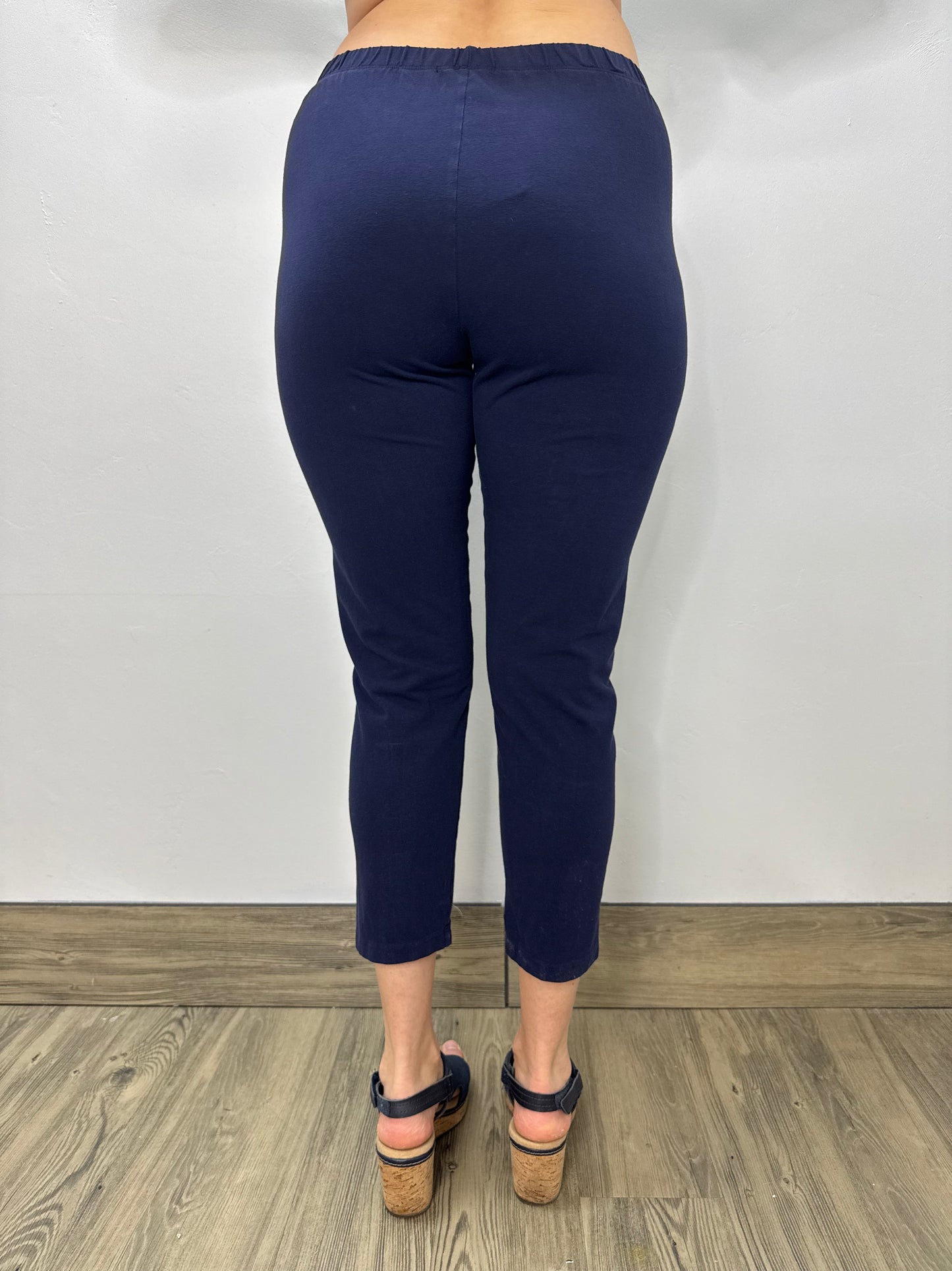 Experience unmatched comfort and style with our Navy Pull On Capri Legging. Featuring a soft cotton blend and an easy elastic waistband, these pull-on capris offer a flattering fit with effortless wear. The versatile blue hue adds a fresh, natural touch to your casual wardrobe. Perfect for everyday wear, these leggings provide breathable comfort and flexibility, whether you’re out running errands or relaxing at home.