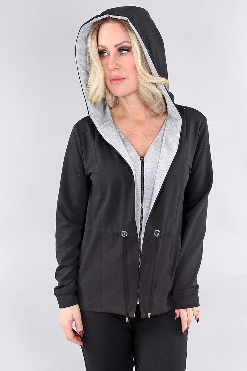 Black and Gray Long Sleeve Zip Up Hoodie