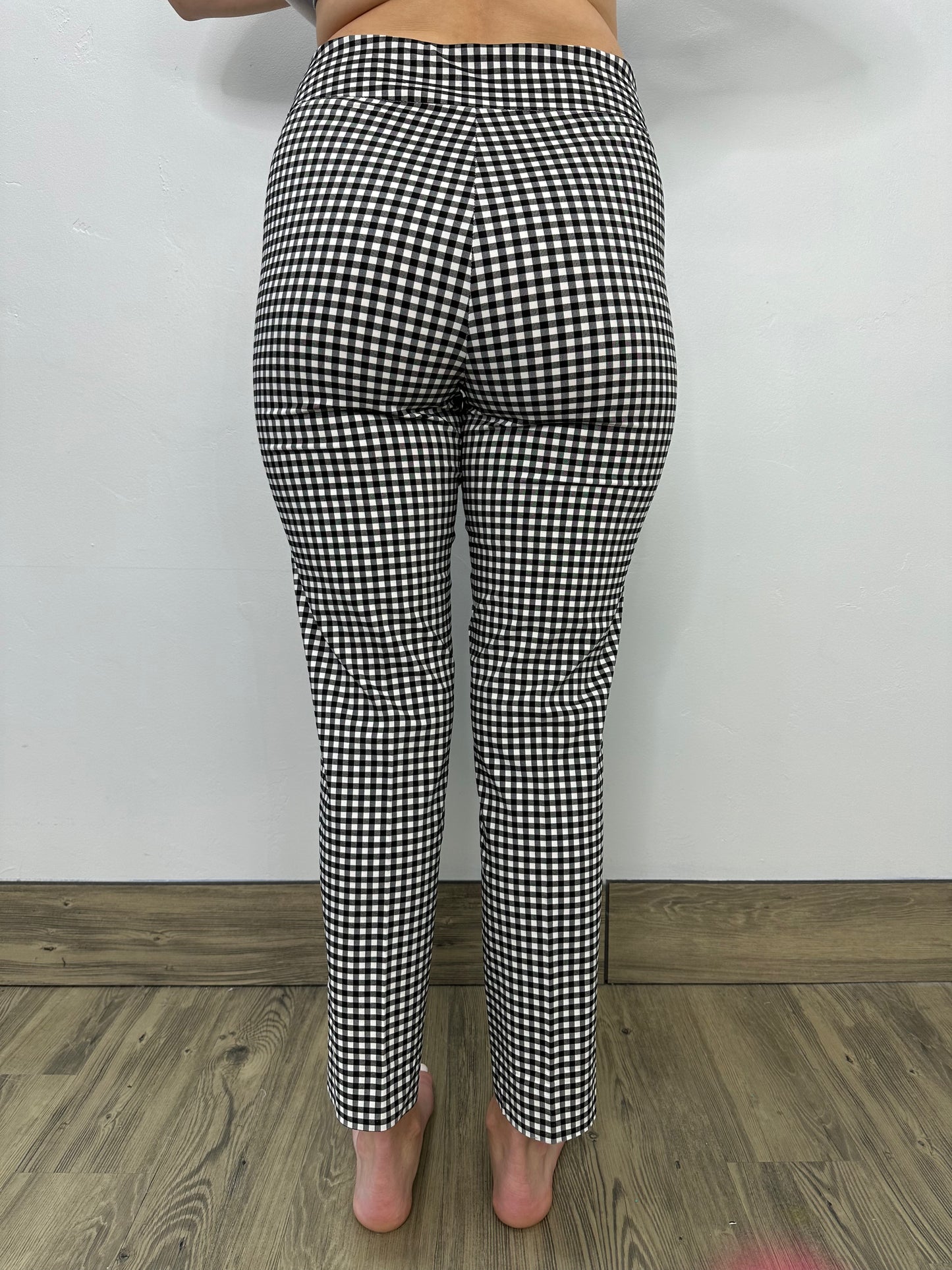 Regular price $77.40Look chic and feel comfortable with these gingham full length pants. Crafted with black and white gingham plaid, these pants feature a flattering 28" inseam, and are made with stretchy material for maximum ease. Pull-on styling and no pockets ensures a smooth, seamless fit!