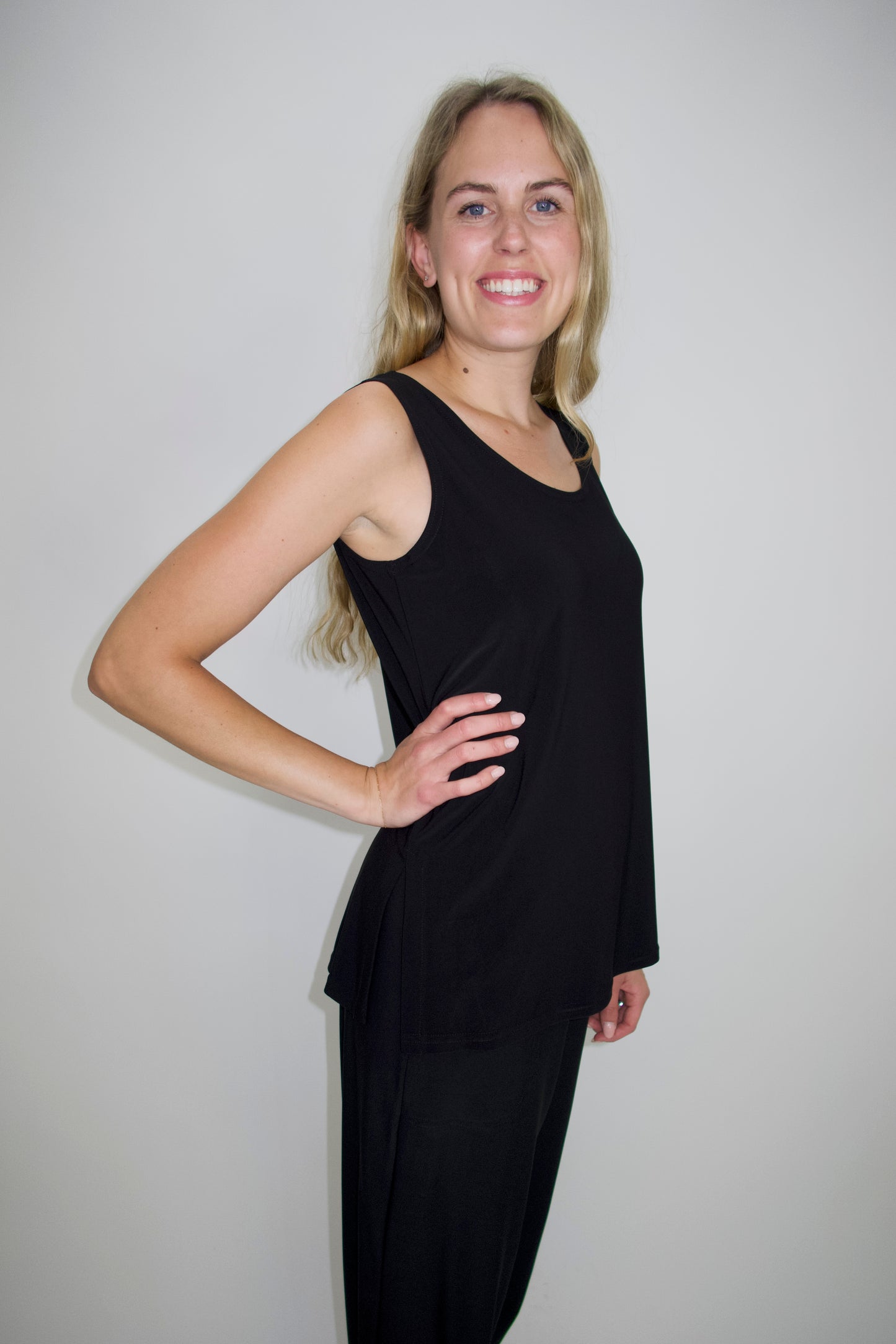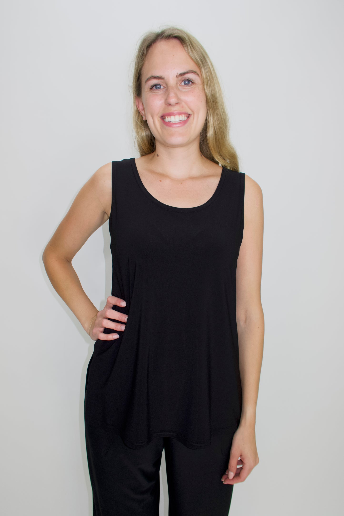 This Black Basic Scoop Neck Sleeveless Tank is crafted from super soft ITY fabric, offering exceptional comfort and durability. Its sleek design and high-quality material make it a versatile staple, perfect for layering or wearing on its own. Experience lasting softness and style that moves with you throughout your day.