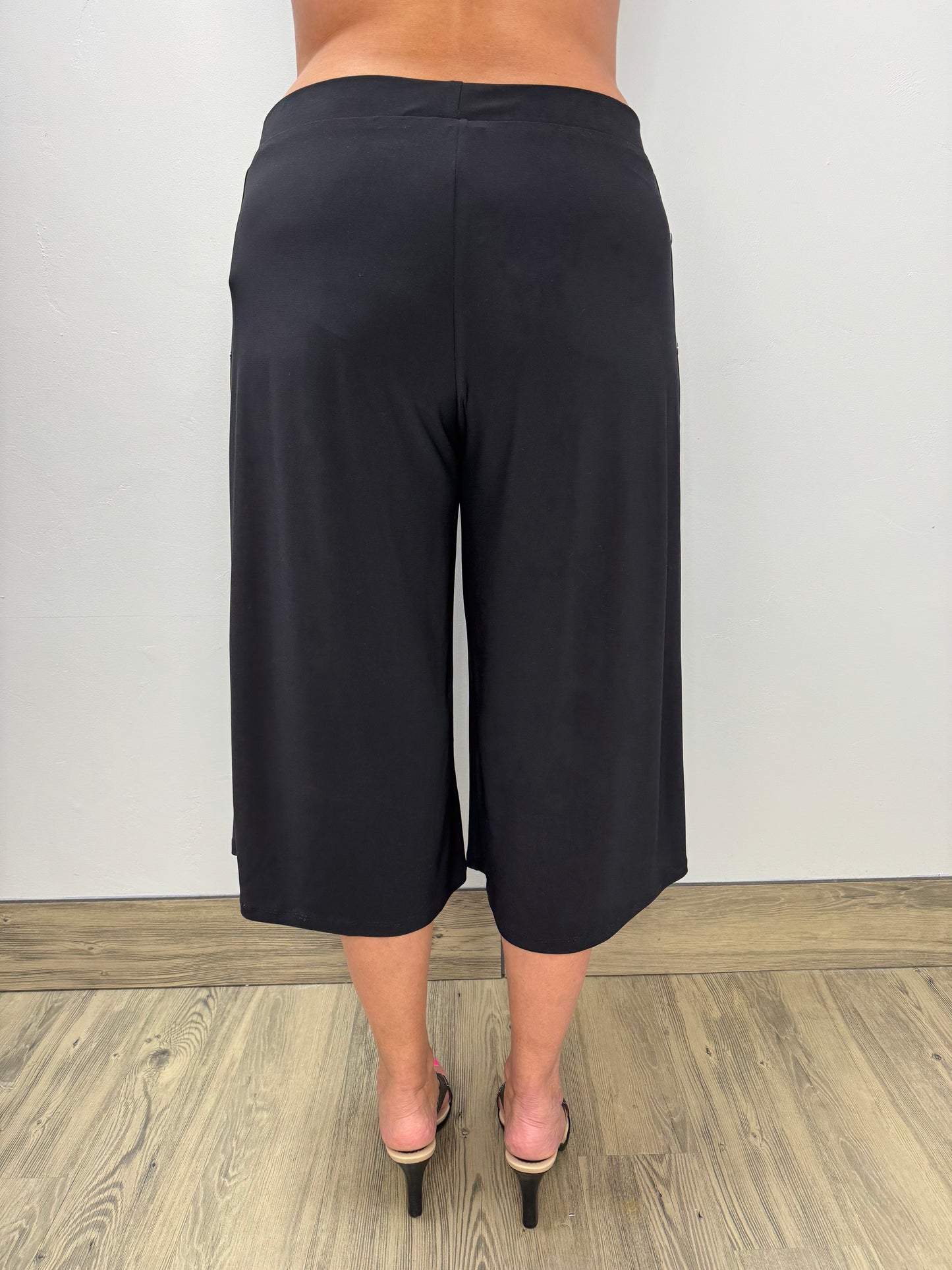 Black Capri Pants with Side Buttons and Flat Front