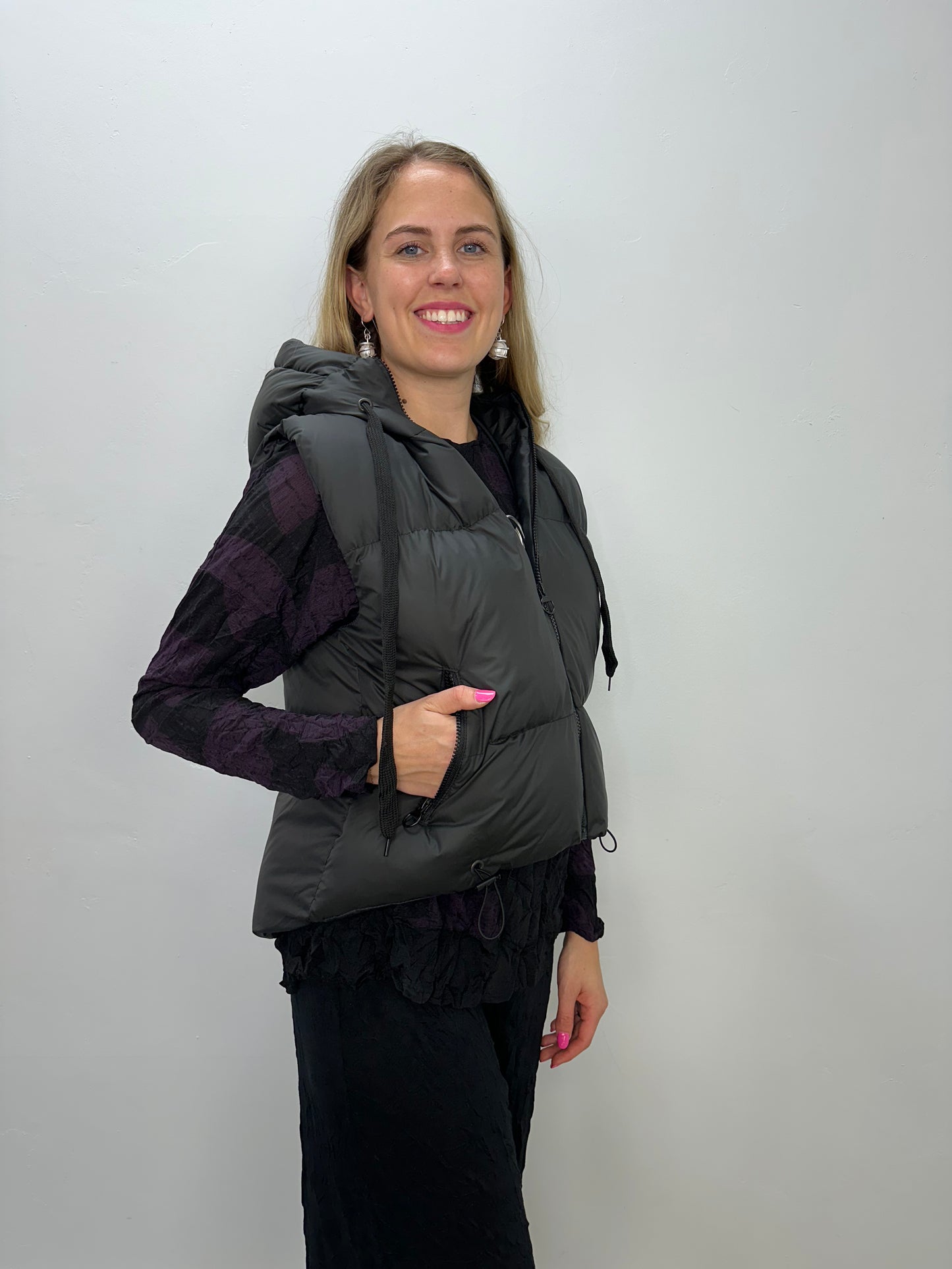 Regular price $77.40Stay warm and cozy this season with our Black Hooded Puffer Vest! This sleeveless vest features a puffer design for extra warmth and a drawstring for a personalized fit. Its hi-low design adds a stylish touch and can be worn over anything. Embrace the chilly weather in style and comfort.