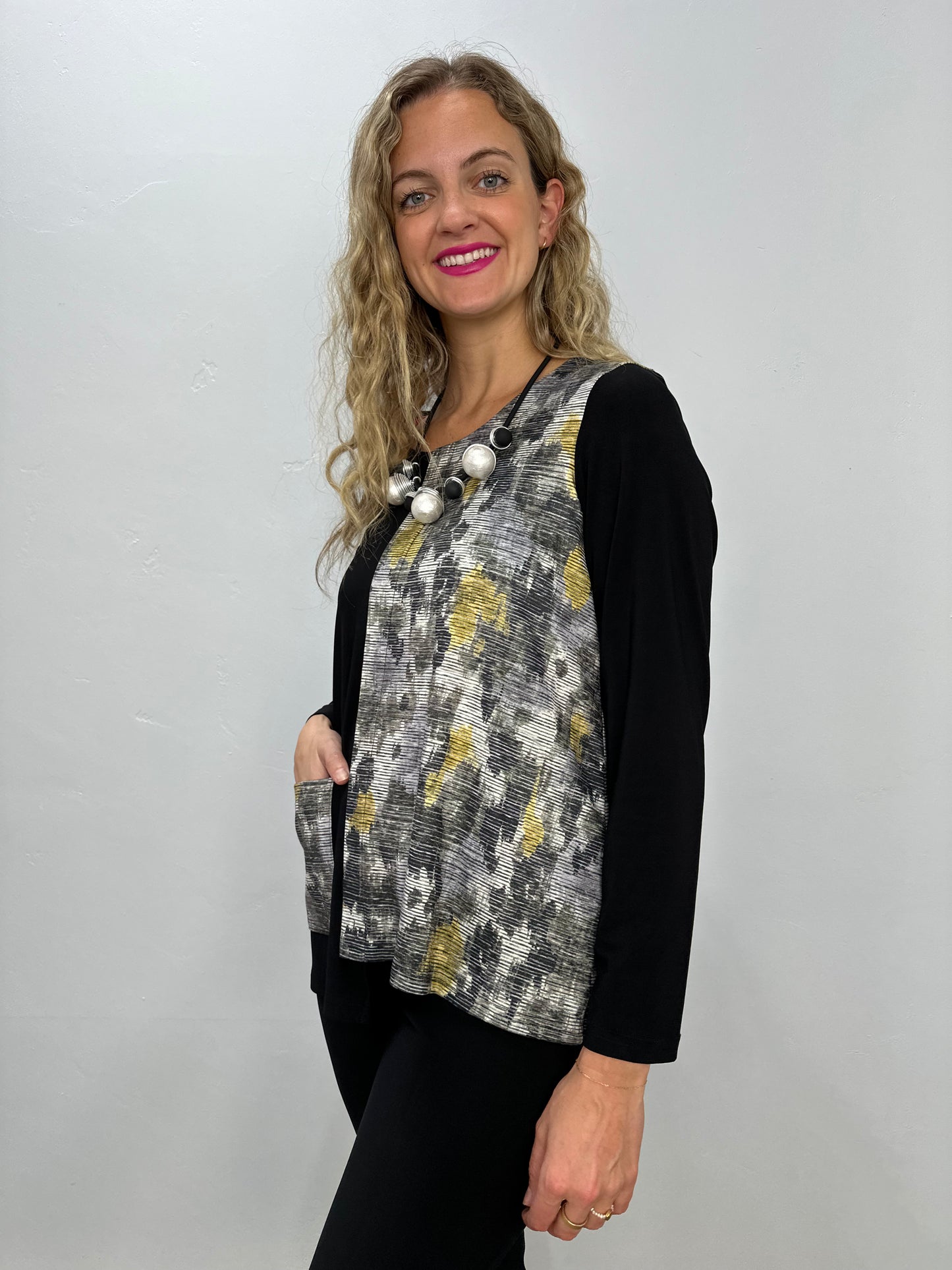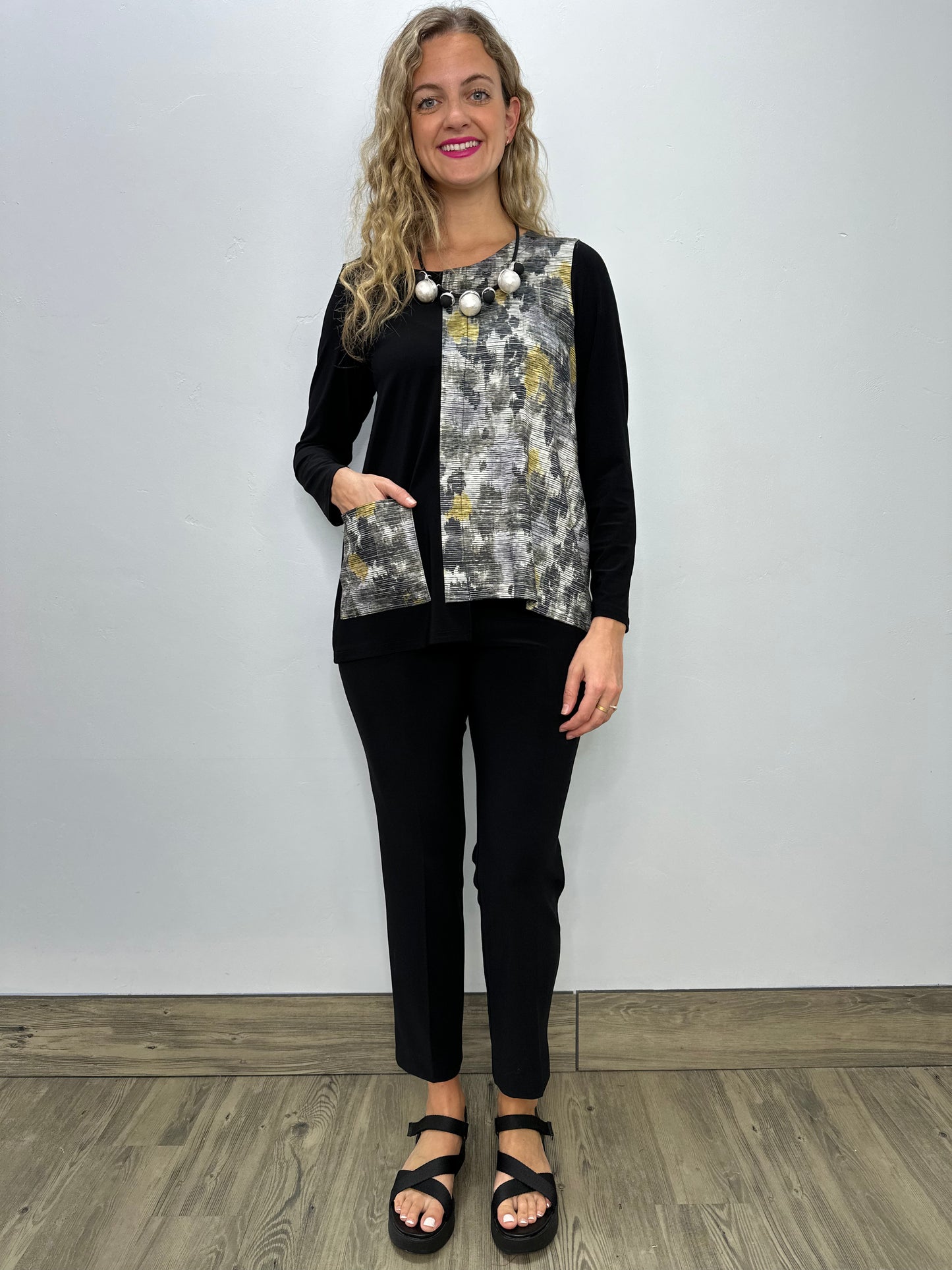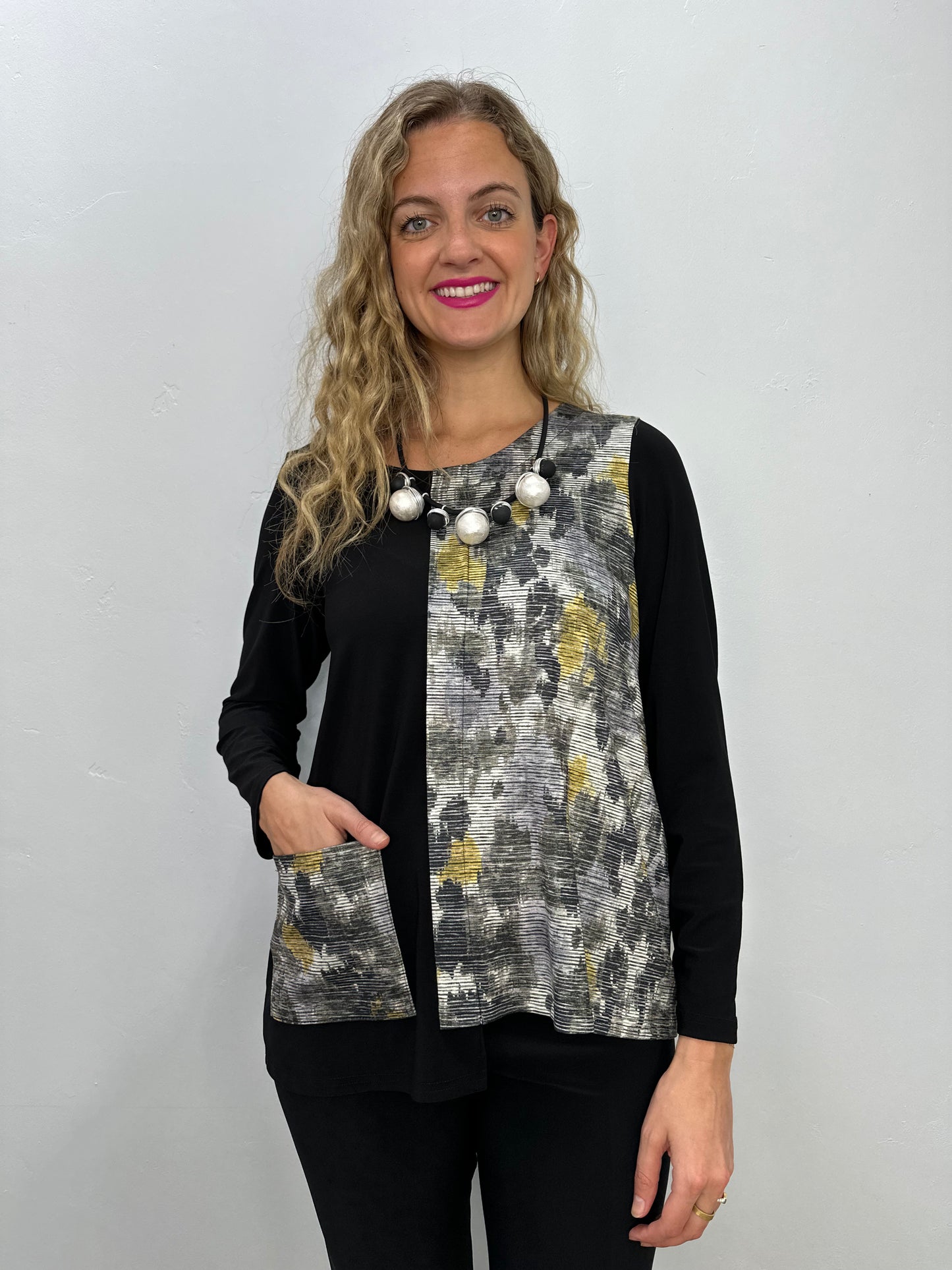 Regular price $65.40Elevate your wardrobe with our Black Pattern Long Sleeve Top! Combining sleek black fabric with a unique patterned design, this top will surely make a statement. The front pocket accent adds functionality and style, while the scoop neck adds a touch of femininity. Perfect for any occasion, this top is a must-have for fashion-forward individuals.