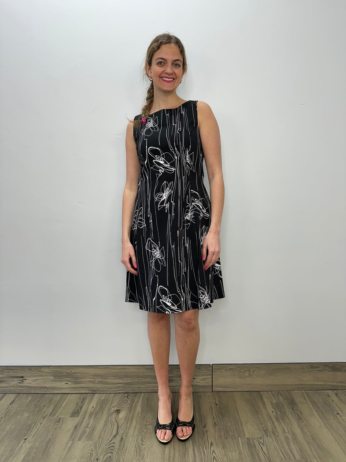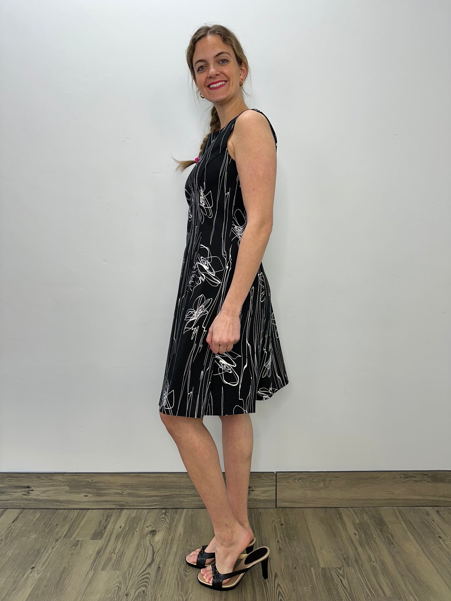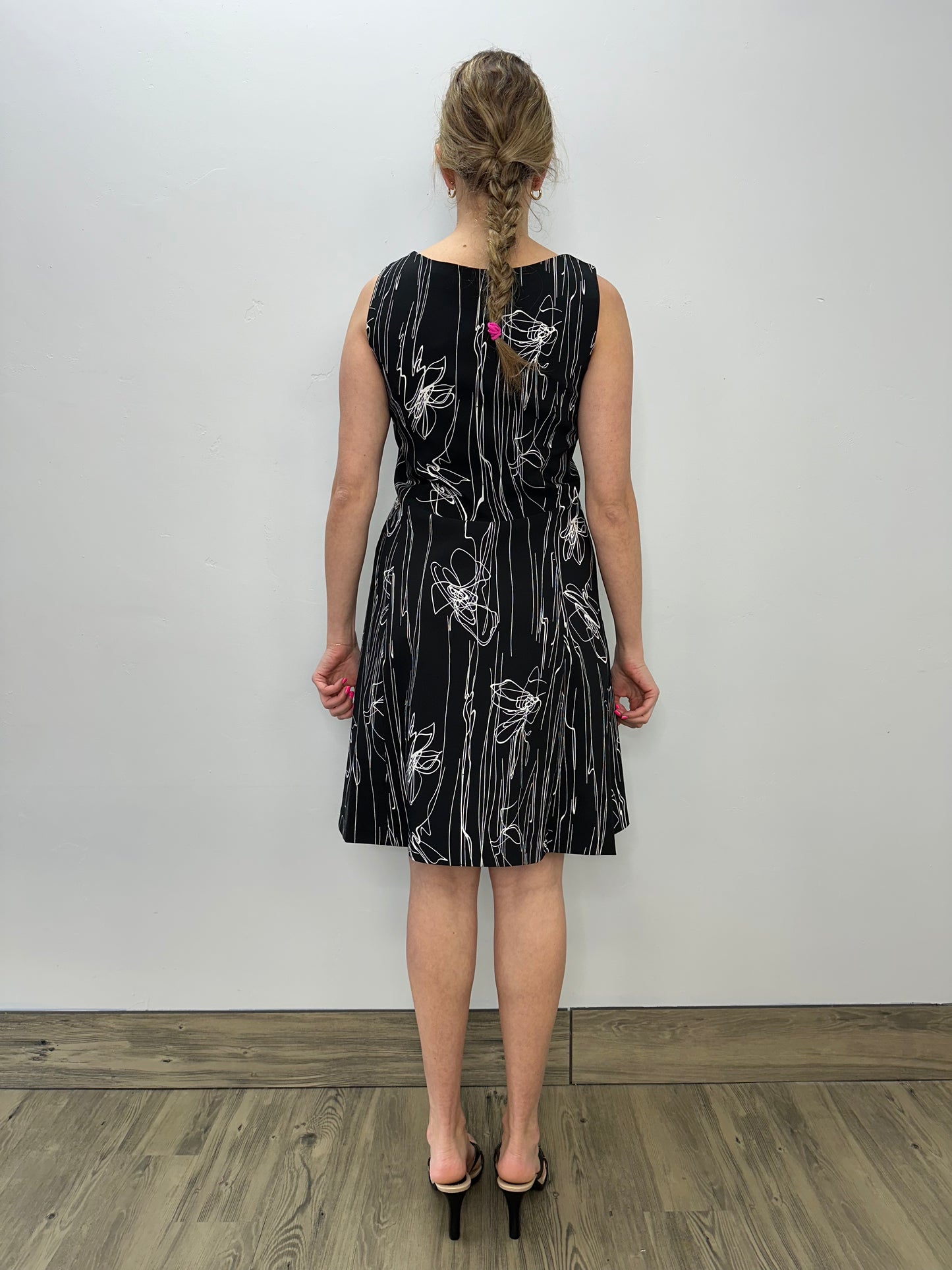 Black Scribbles Sleeveless Flared Dress