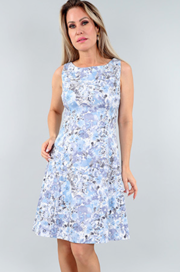 How fun is our Blue Grey Floral Sleeveless Flared Dress?! Experience elegance and playfulness, made with a beautiful fabric, this dress features a flattering silhouette and a fun pattern. The perfect combination of classic and playful, this dress will make you feel confident and stylish.