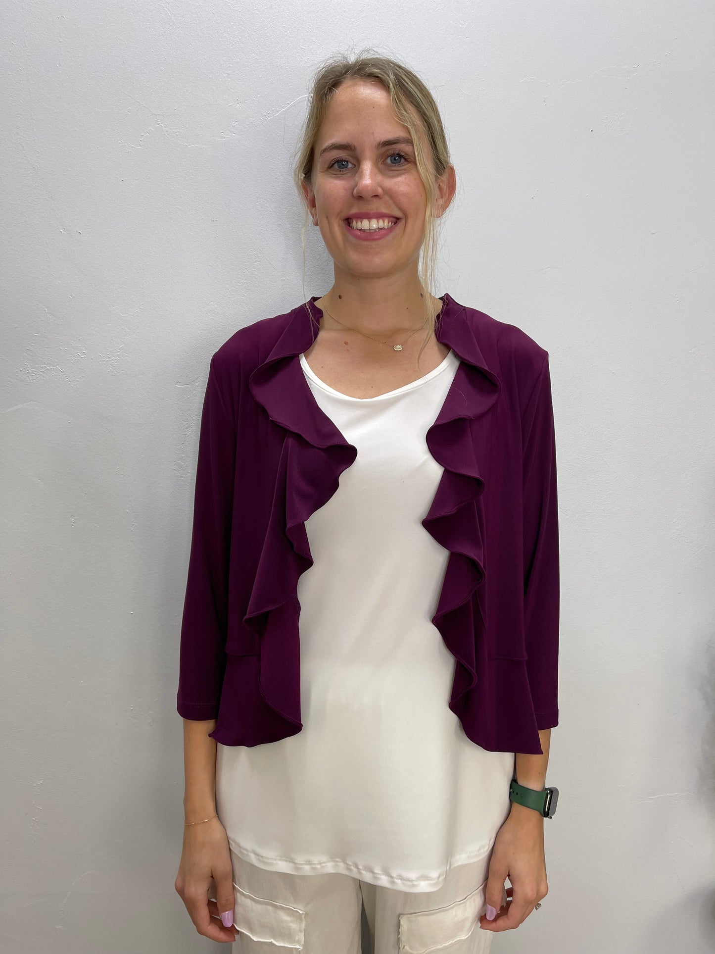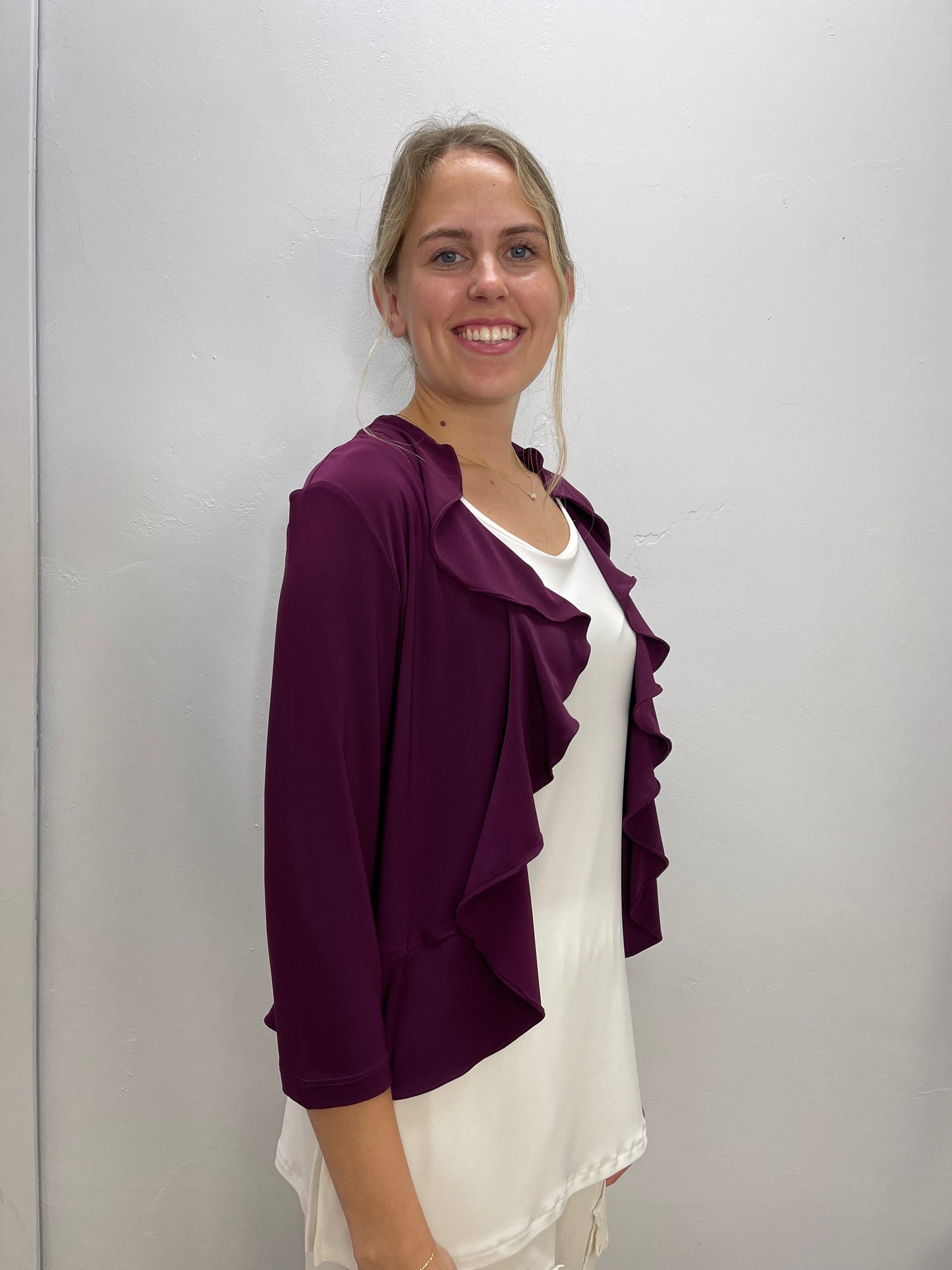 Eggplant Purple 3/4 Sleeve Ruffle Bolero