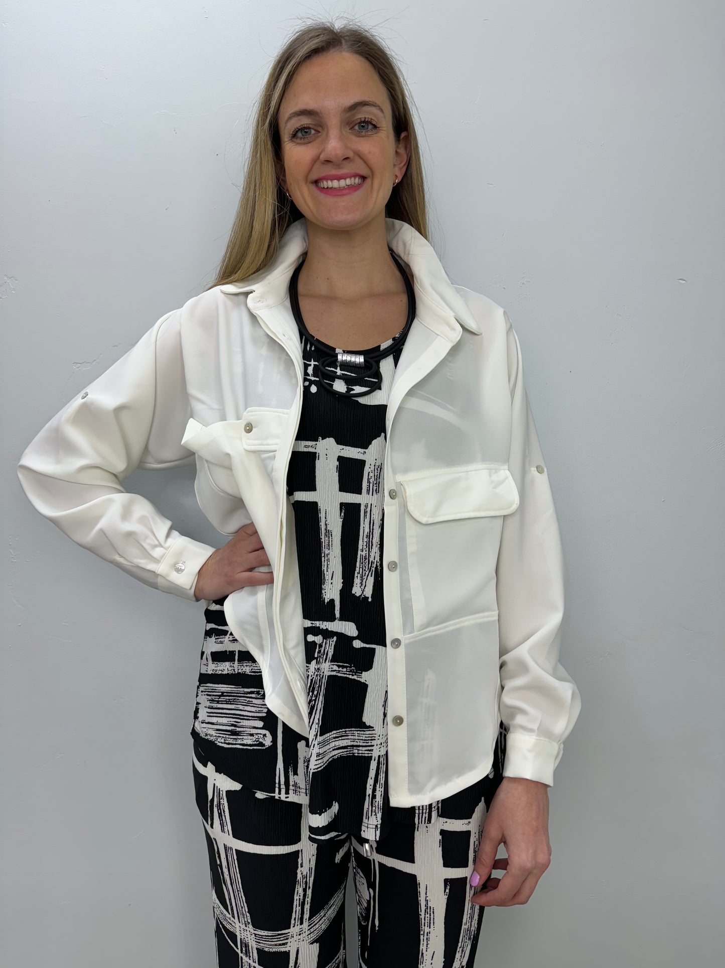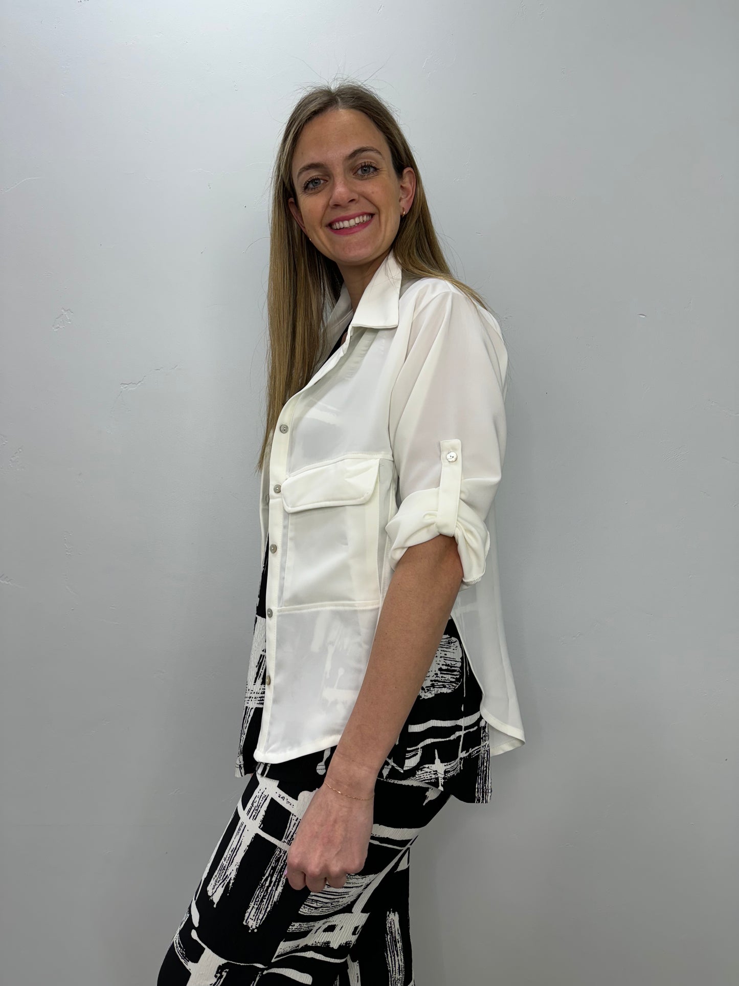 Regular price $71.40This fashionable ivory long sleeve shirt is perfect for any occasion! With its button down design and convenient pockets, you'll always look stylish and put together. Plus, the sleeves can be buttoned up on the sides for a unique and versatile look. Elevate your wardrobe with this must-have piece!