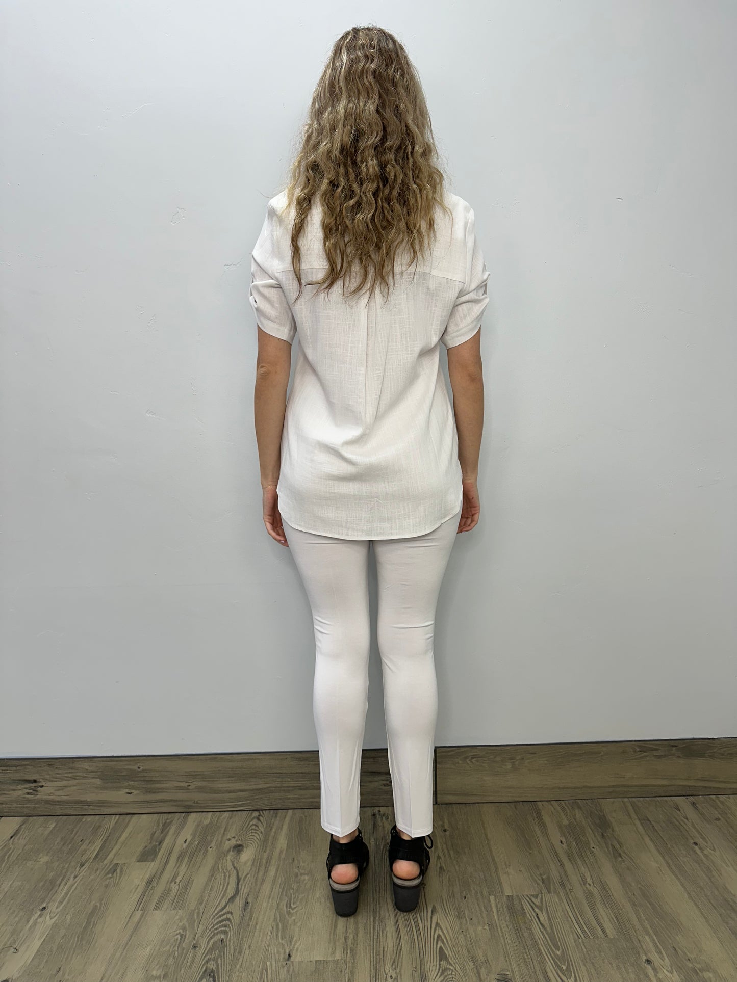 Regular price $77.60Indulge in the breezy comfort of the Ivory V-Neck Linen Blouse. Adorned with a flattering v-neck and short sleeves, this blouse offers effortless style and breathability. Perfect for your next vacation, the high low hem adds a touch of sophistication. Elevate your wardrobe with this must-have piece!