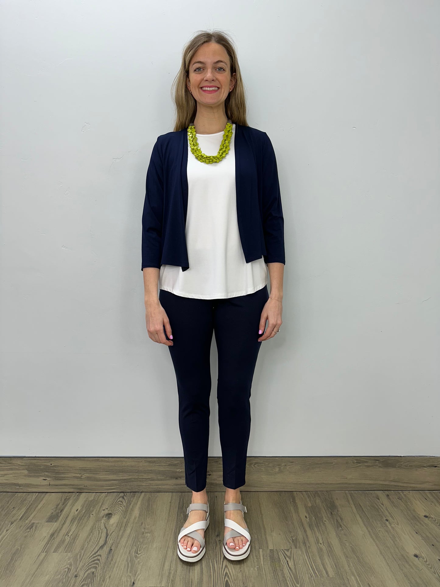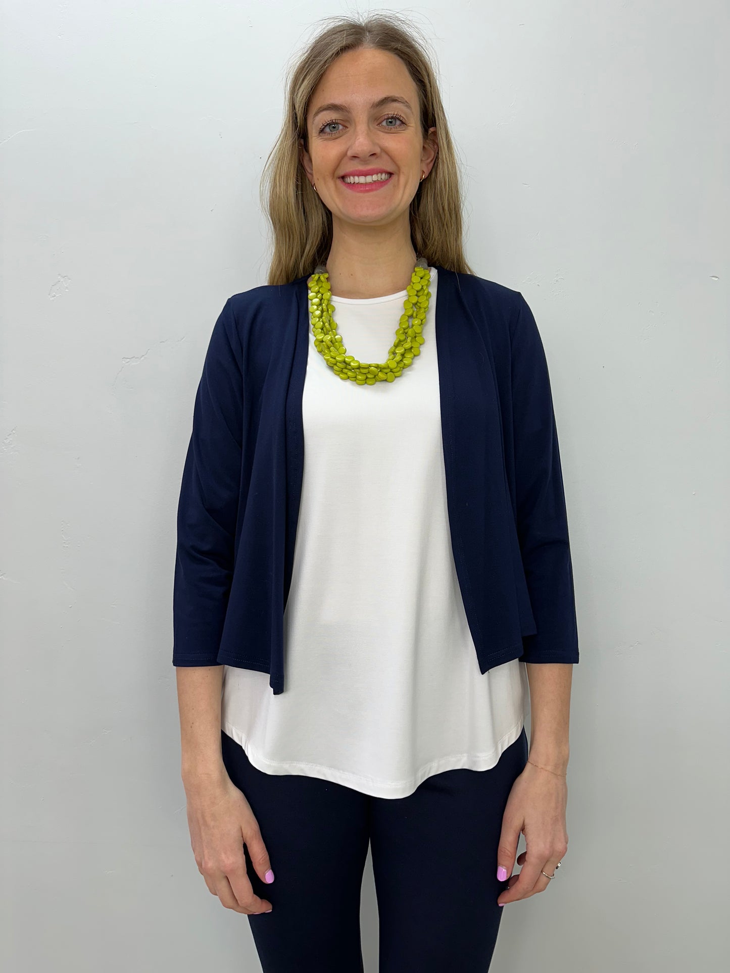 Stay warm and stylish with our Navy 3/4 Sleeve Cover Up Cardigan. Perfect for cool nights or afternoons, this cardigan will keep you cozy and comfortable. A must-have addition to your wardrobe for any season!
