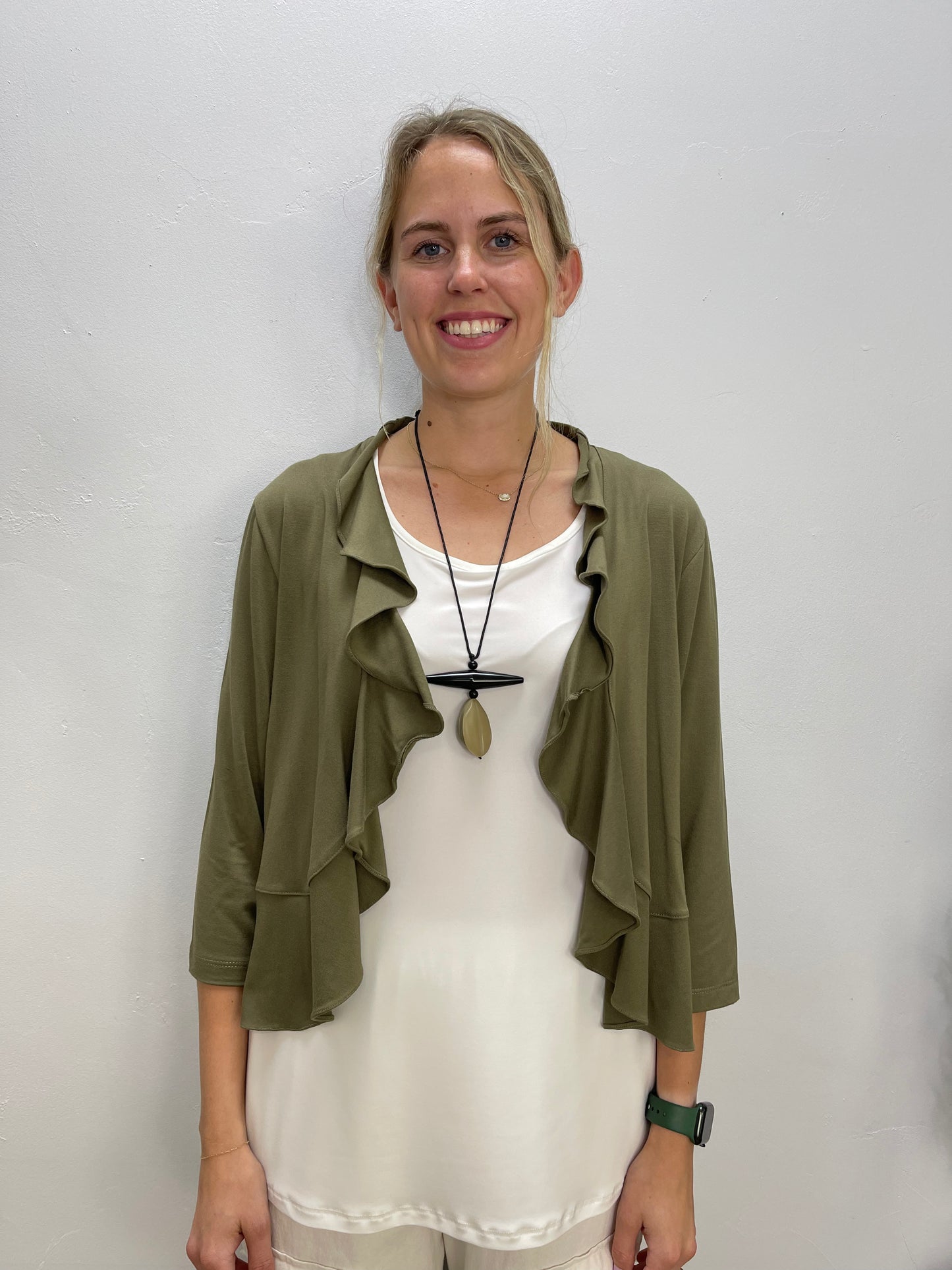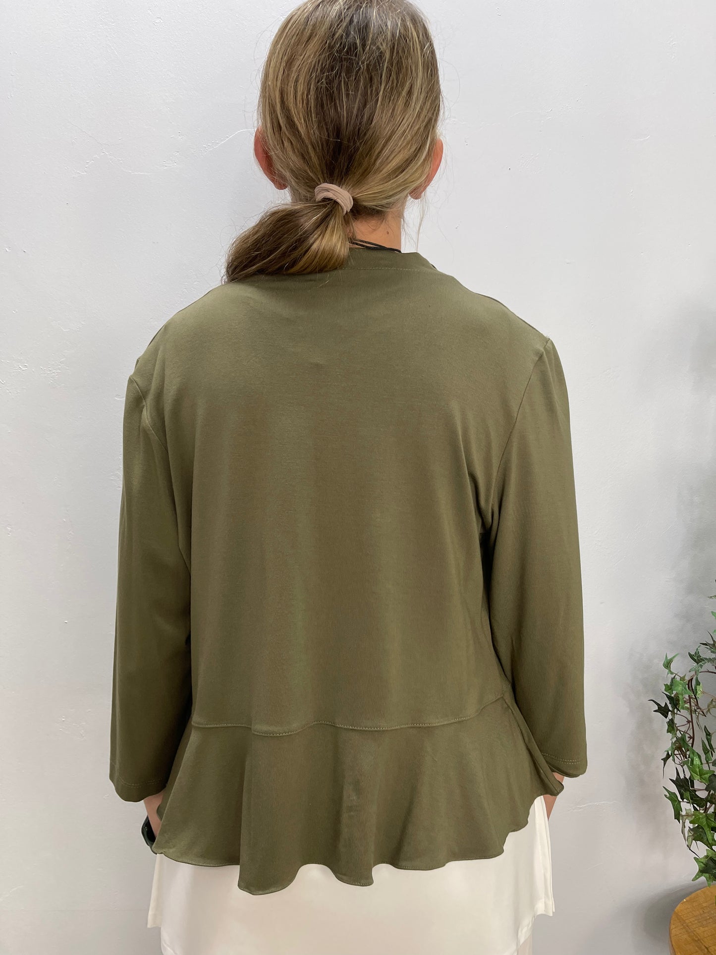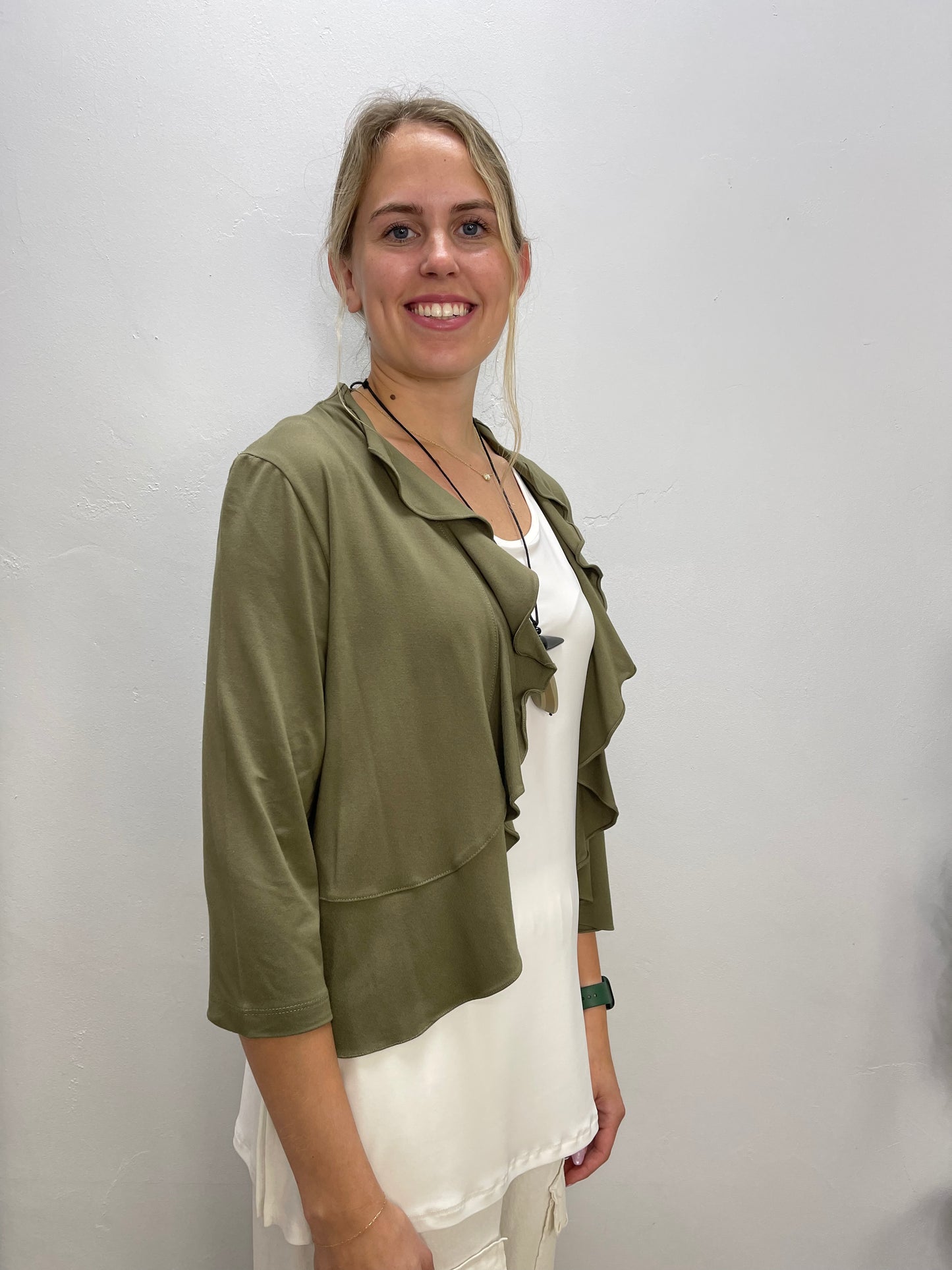 Elevate any dress with our Olive 3/4 Sleeve Ruffle Bolero! Featuring a stylish ruffle design and added sleeves for those sleeveless dresses, this versatile piece will effortlessly match any outfit. Dress up in style and transform any look with this must-have addition to your wardrobe.