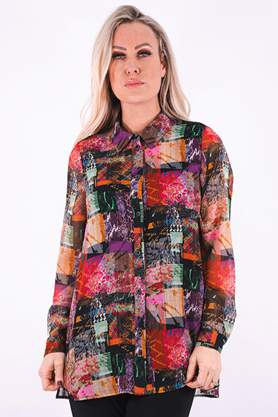 Printed Chiffon Fuchsia Print Button Down