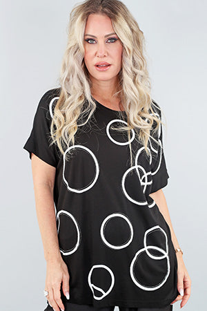 Regular price $77.60Transform your casual look with our Short Sleeve Circles Tee. This simple black tee is elevated with a touch of beauty, featuring fun white circles. Stand out in style and add a touch of fun to your wardrobe.
