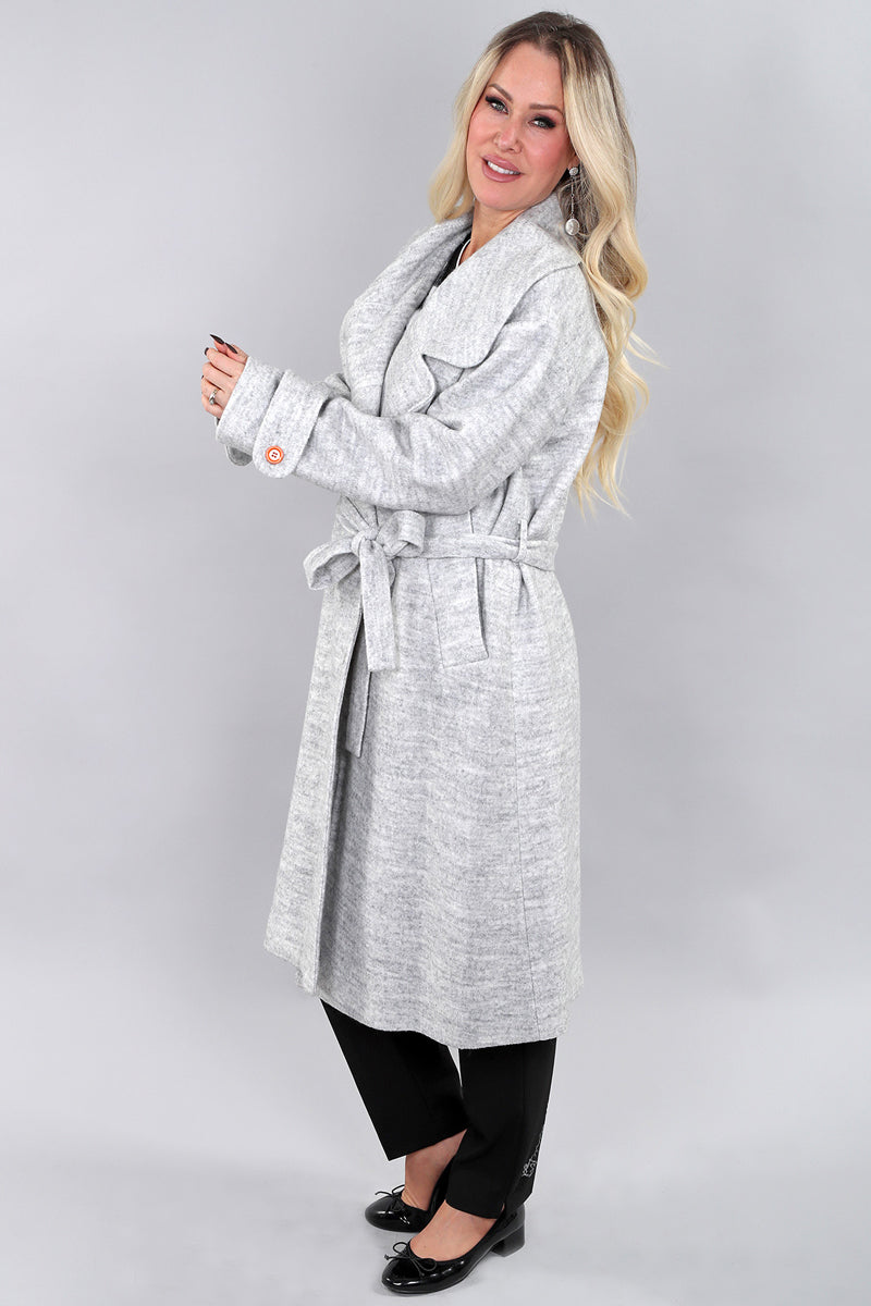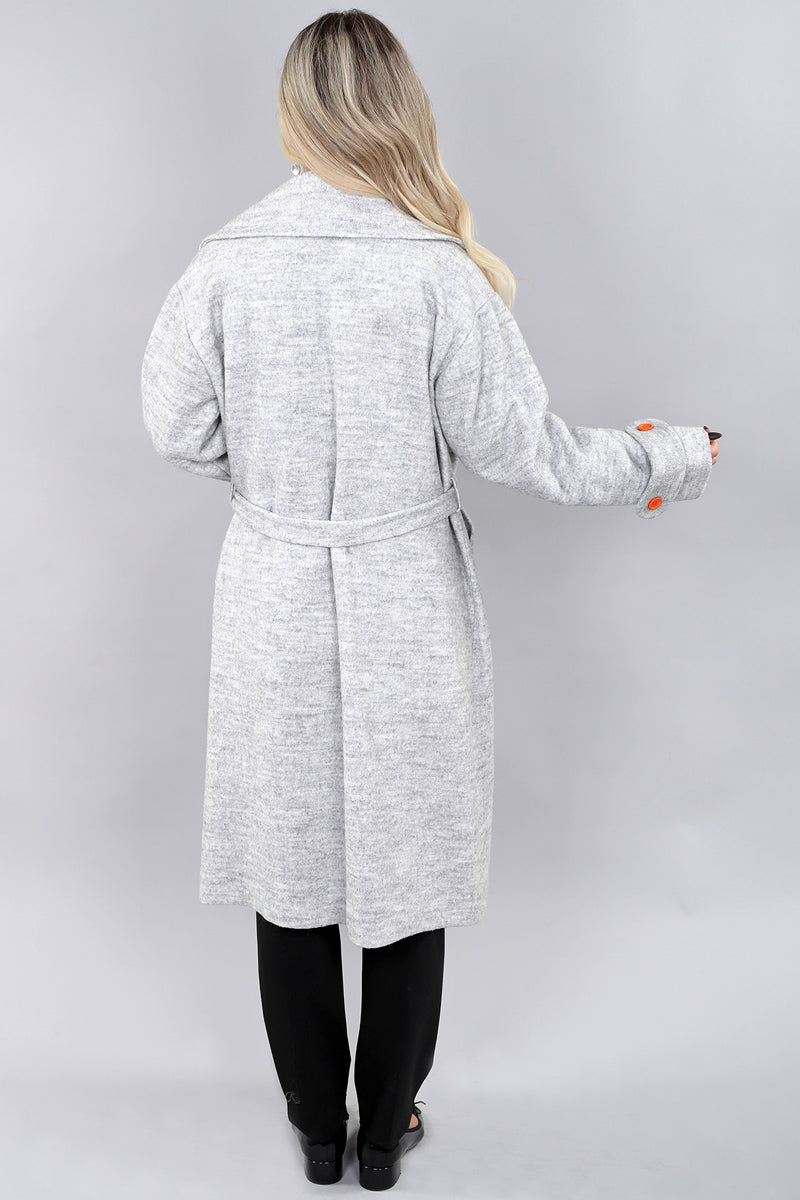 Silver Gray Bow Tie Collared Long Sleeve Wool Jacket