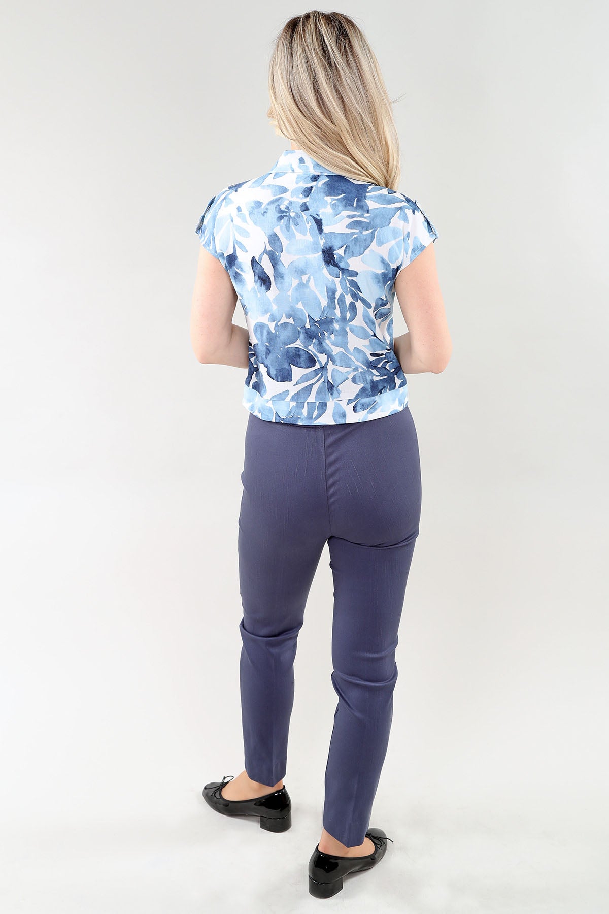 Blue Watercolor Flowers Detail Sleeveless Vest