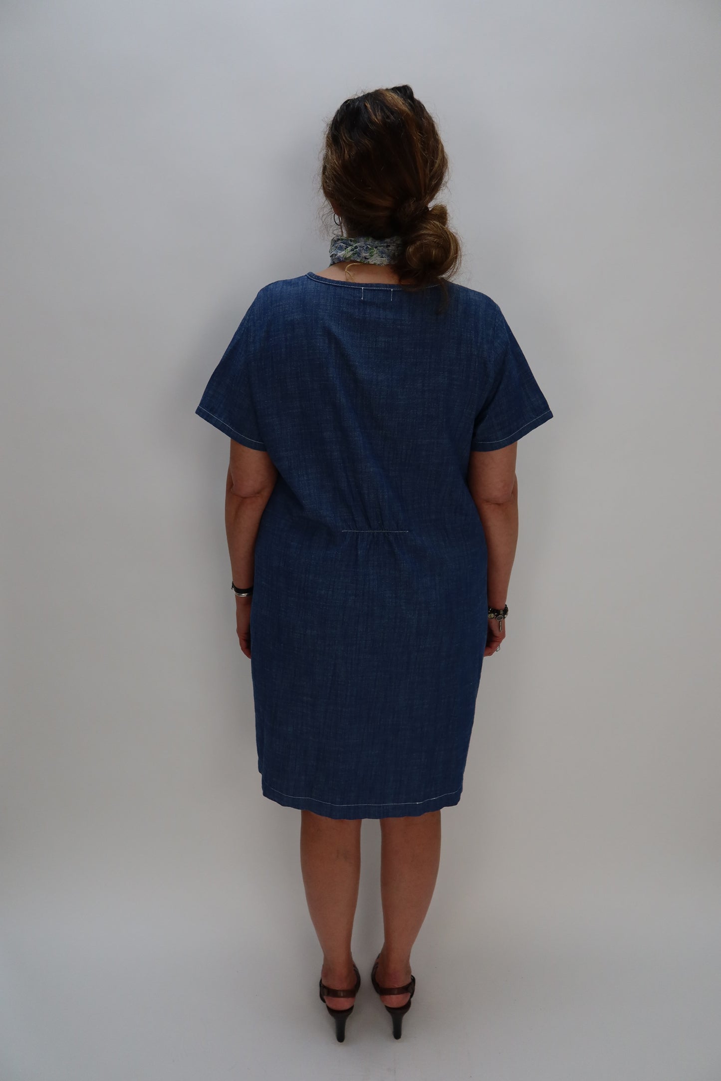 Denim 100% Cotton Chambray Shift Short Sleeve Dress